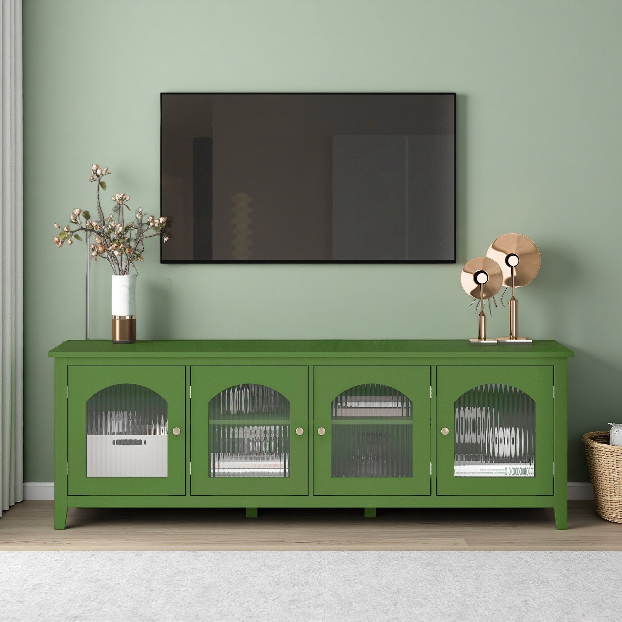 71" TV Stand with Glass Doors, Storage Drawers & Solid Wood Frame