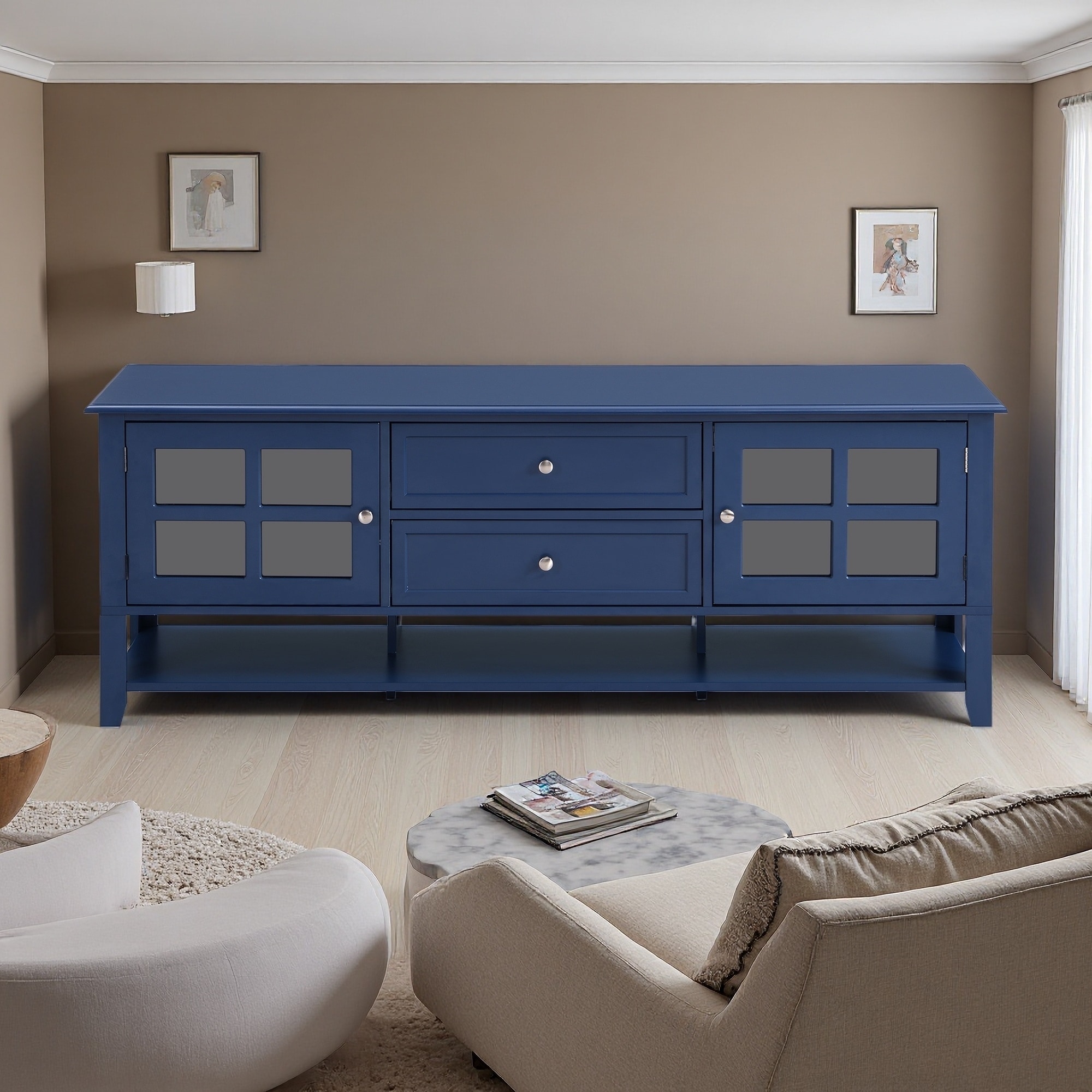 59.1" MDF TV Stand with 2 Drawers, 2 Cabinets & Sleek Blue Finish