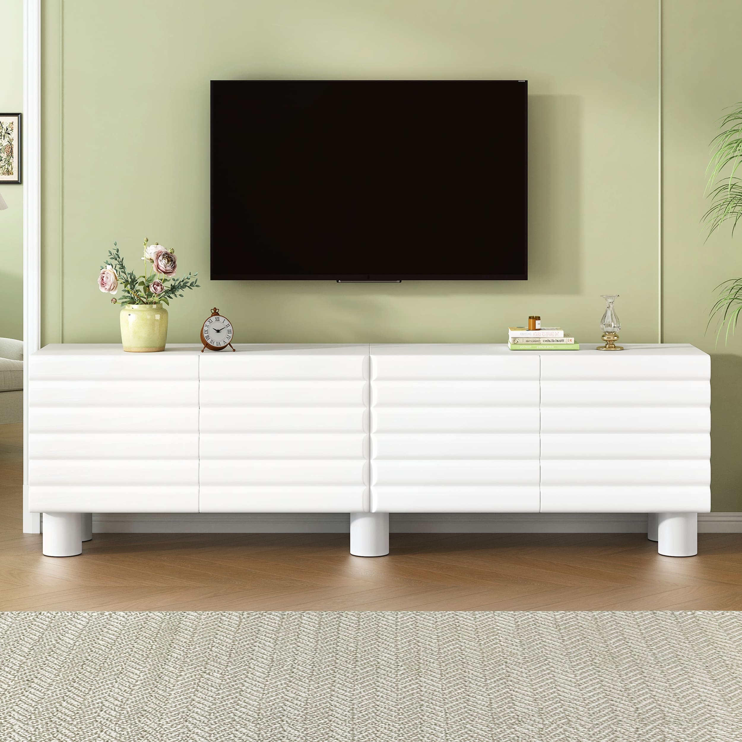 Stylish Thick Wavy Door TV Cabinet with Adjustable Shelves and 4 Cabinets for TVs Up to 75 Inch