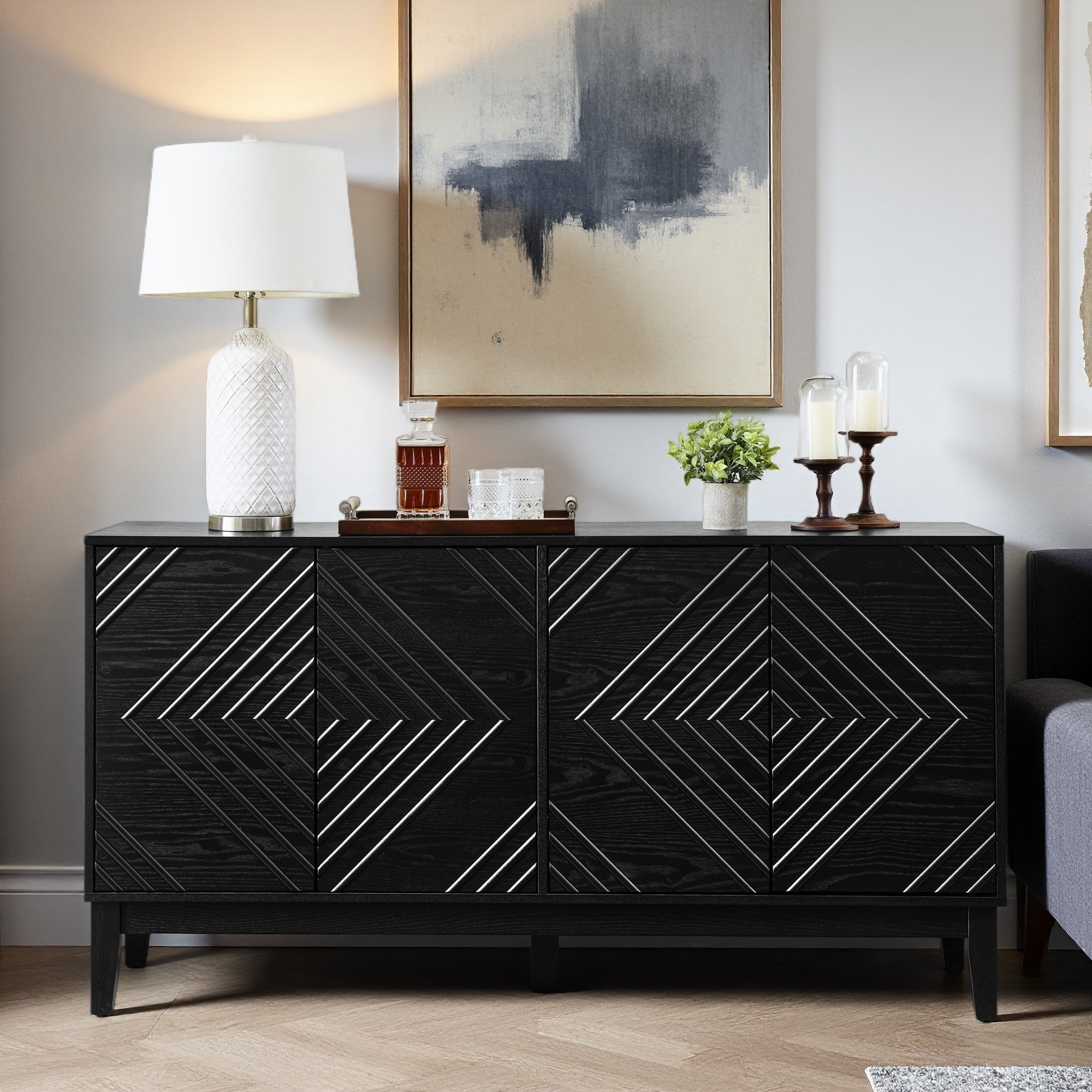 60.5" Farmhouse Buffet Cabinet with Geometric Pattern & Adjustable Shelves