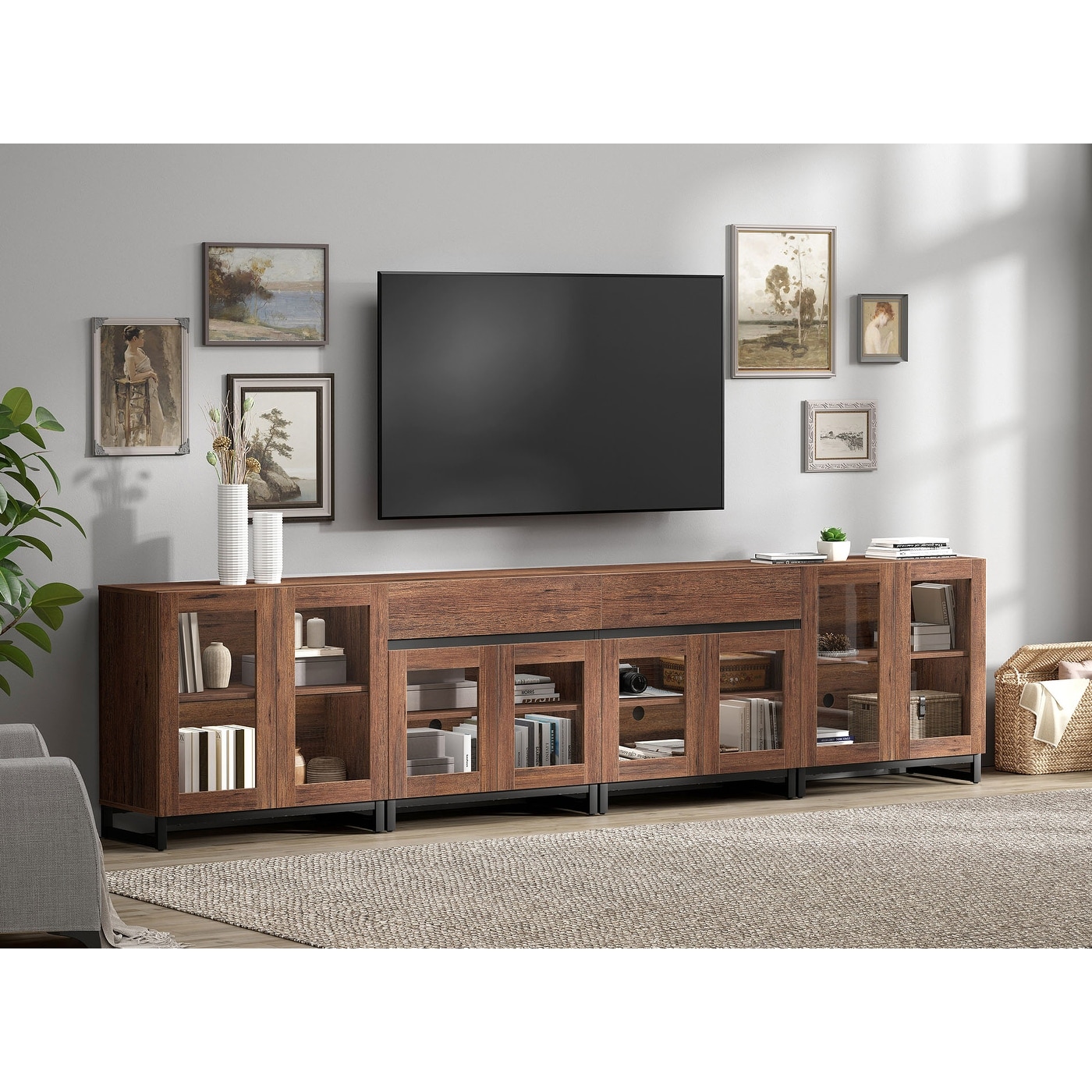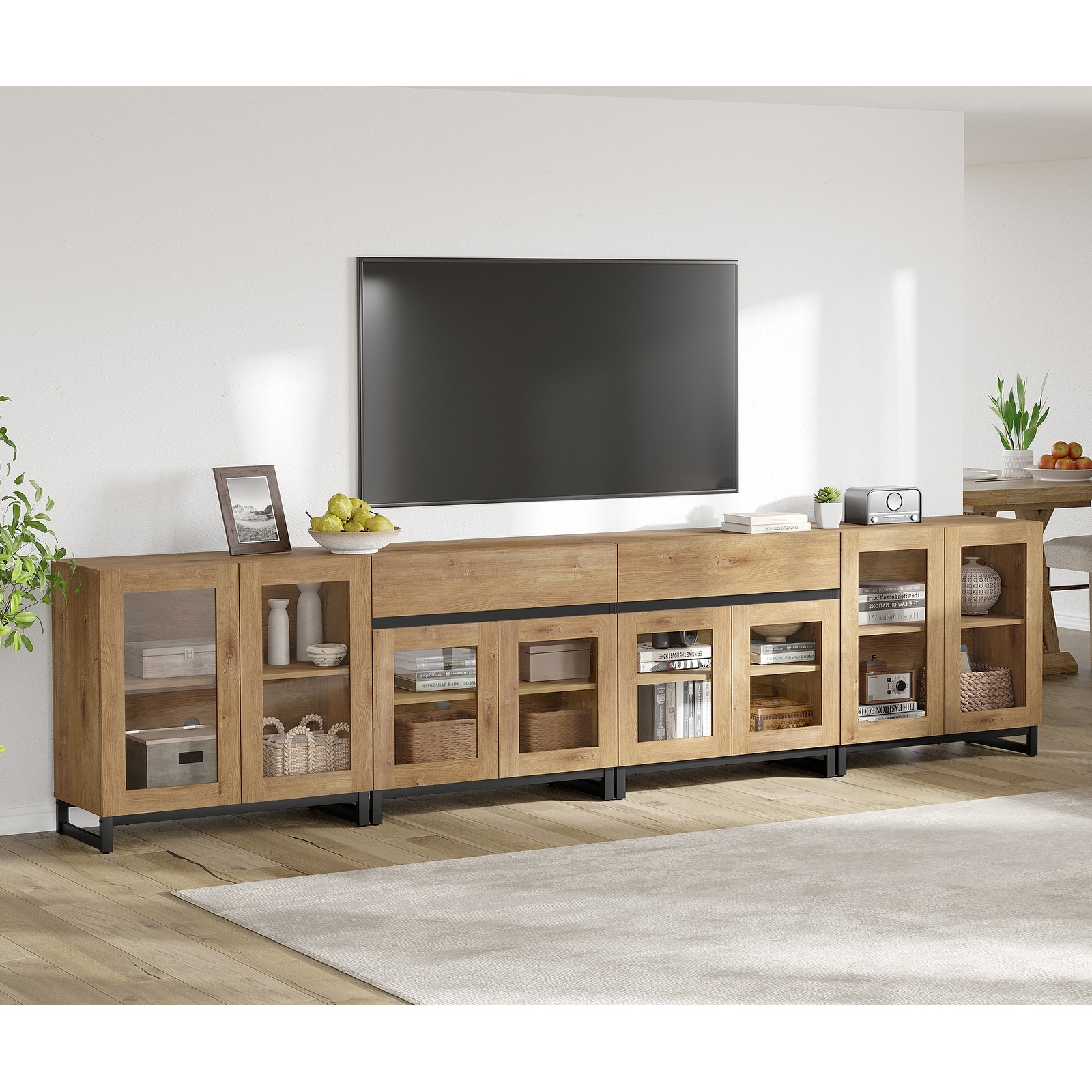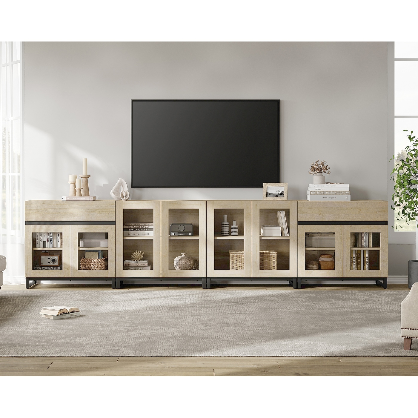 4-in-1 TV Stand for 120" TVs, Modern Console with Glass Doors & 2 Drawers