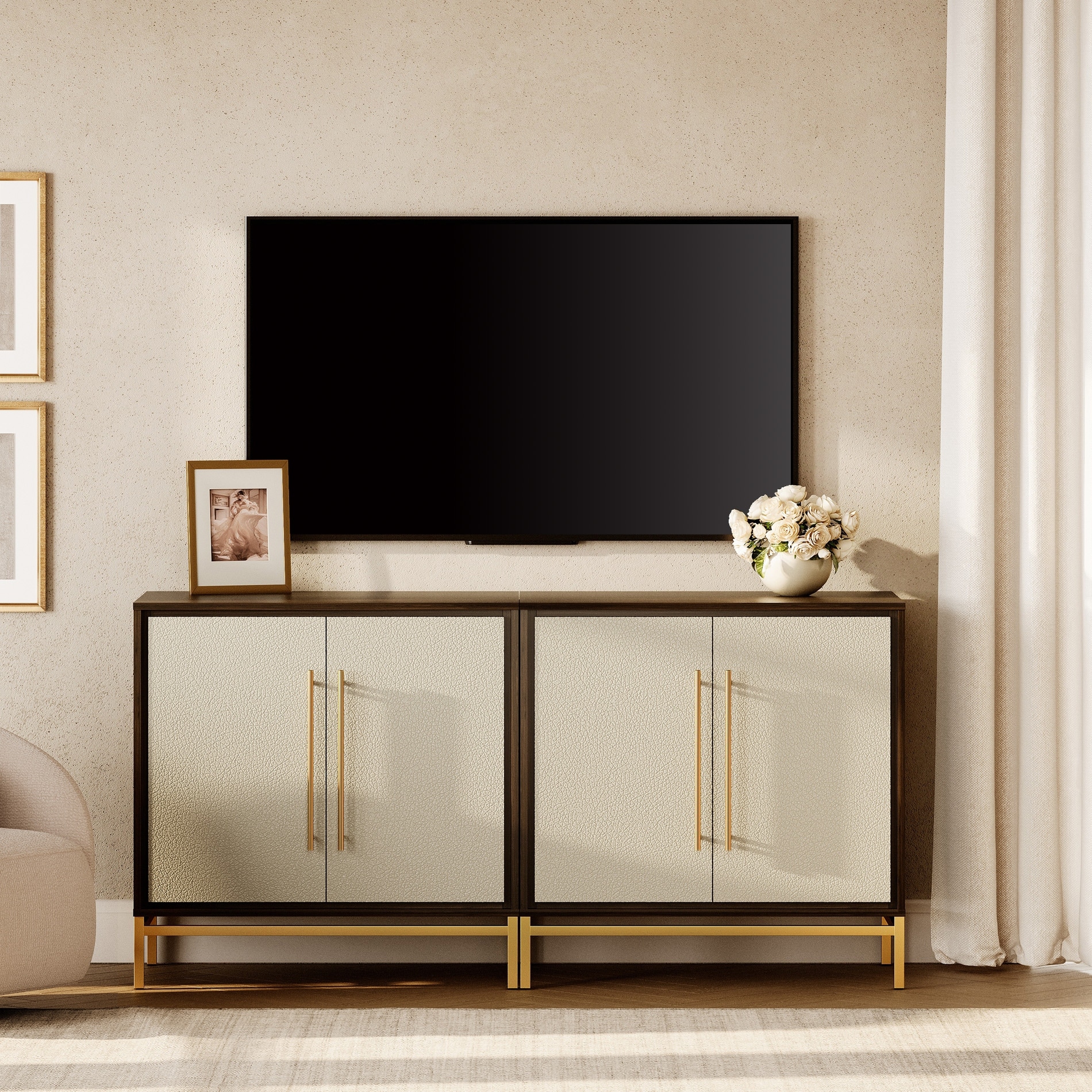 WAMPAT Modern TV Stand with Leather-Textured Doors