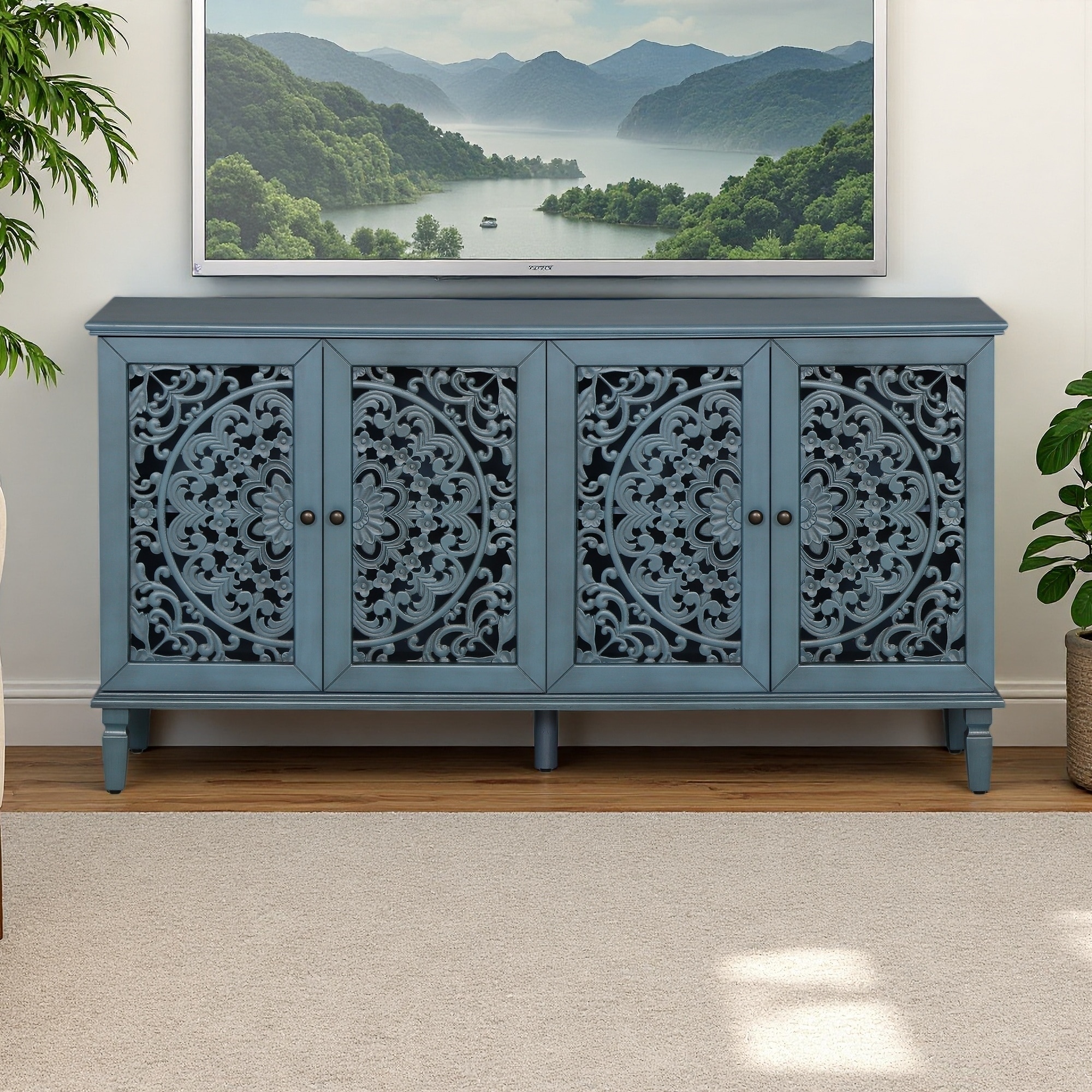 60" Buffet Cabinet Sideboard with Carved Doors & Adjustable Shelves