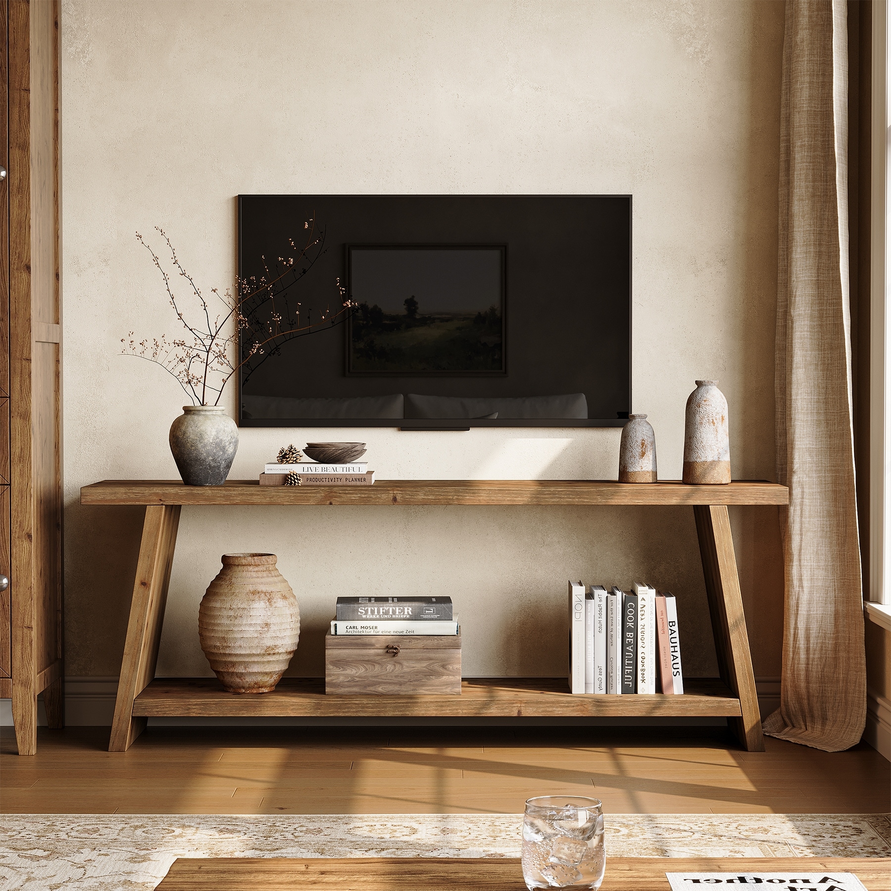 2-Tier Solid Wood TV Stand
