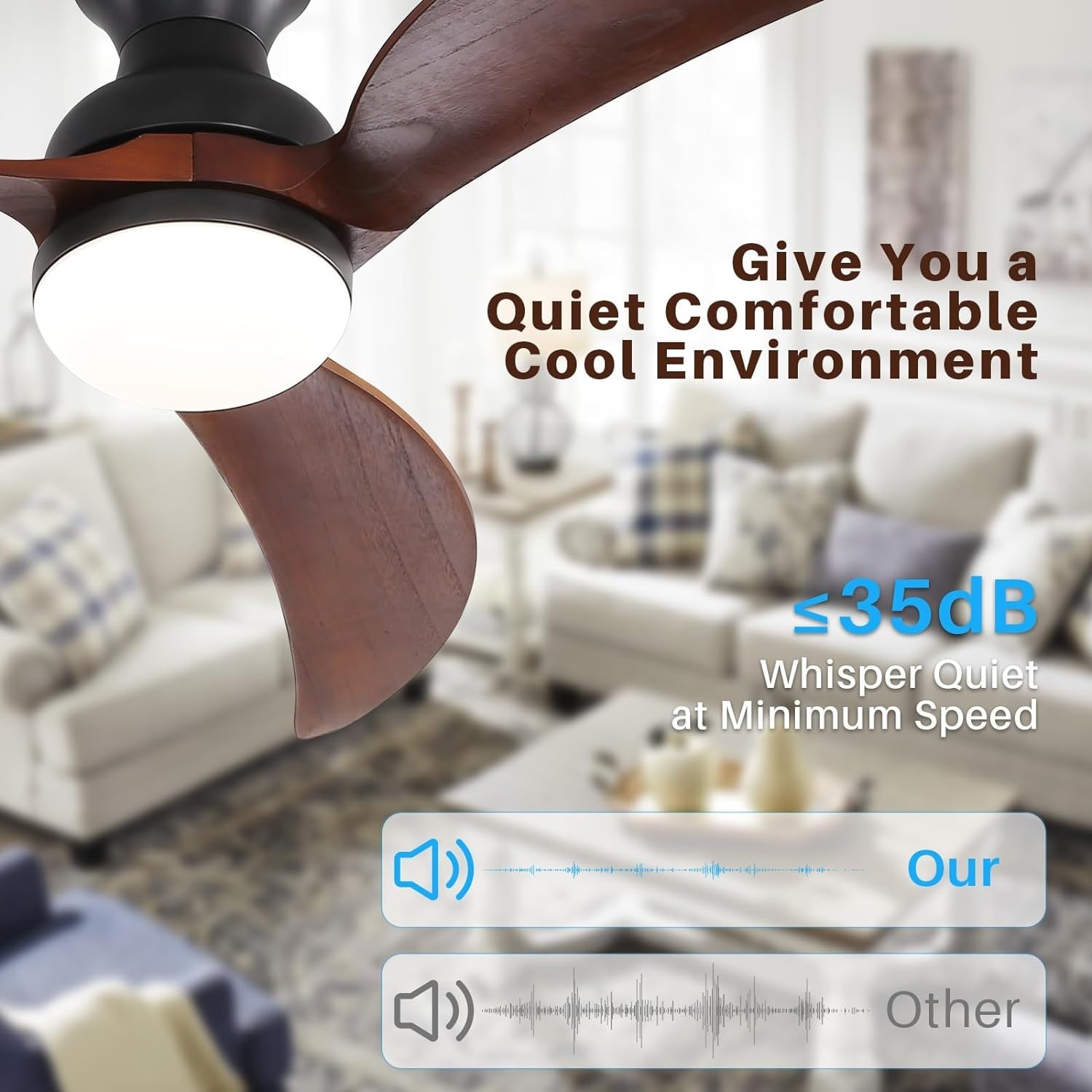 52 Inch Modern Ceiling Fan With 3 Color Dimmable Solid Wood Blades Remote Control Reversible Dc Motor For Bedroom - 52inch