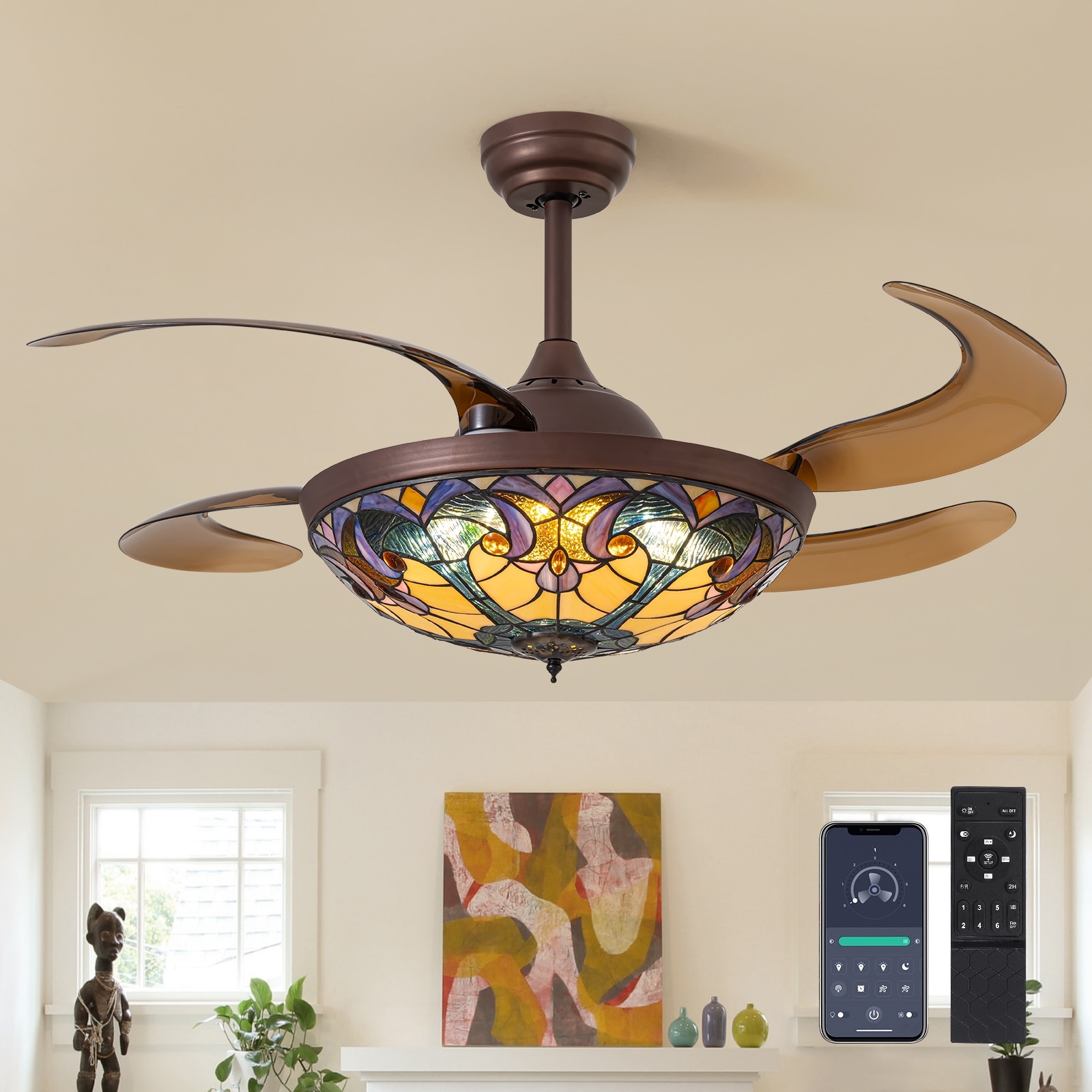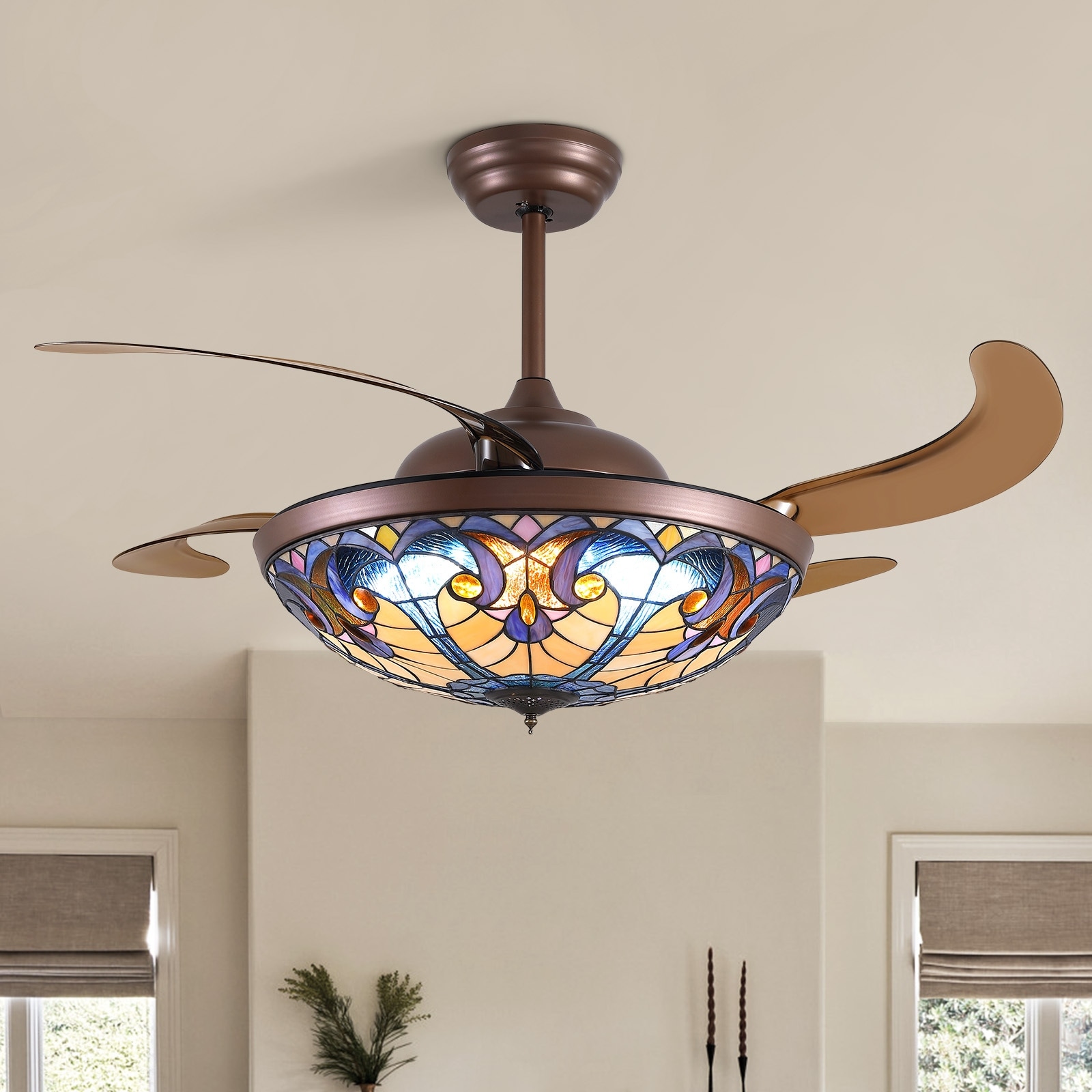 Tiffany Style Ceiling Fan With Lights, Vintage Stained Glass Ceiling Light Fixture