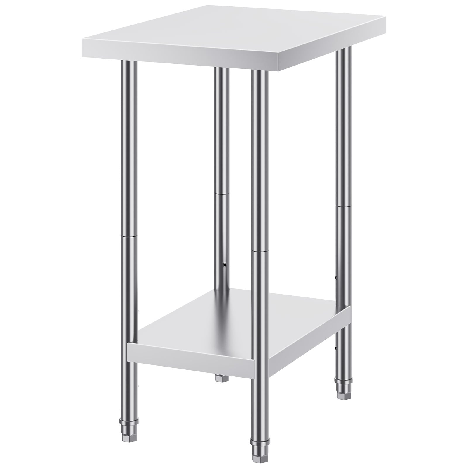 VEVOR Stainless Steel Prep Table with 3 Adjustable Height Levels, Commercial Workstation for Kitchen Garage Restaurant Backyard