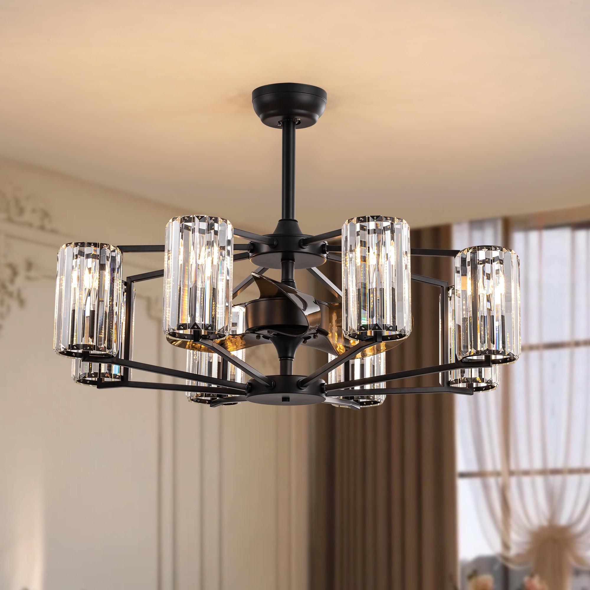 36 in. Vintage Downrod Mount Crystal Glass Caged Ceiling Fan with Remote Control