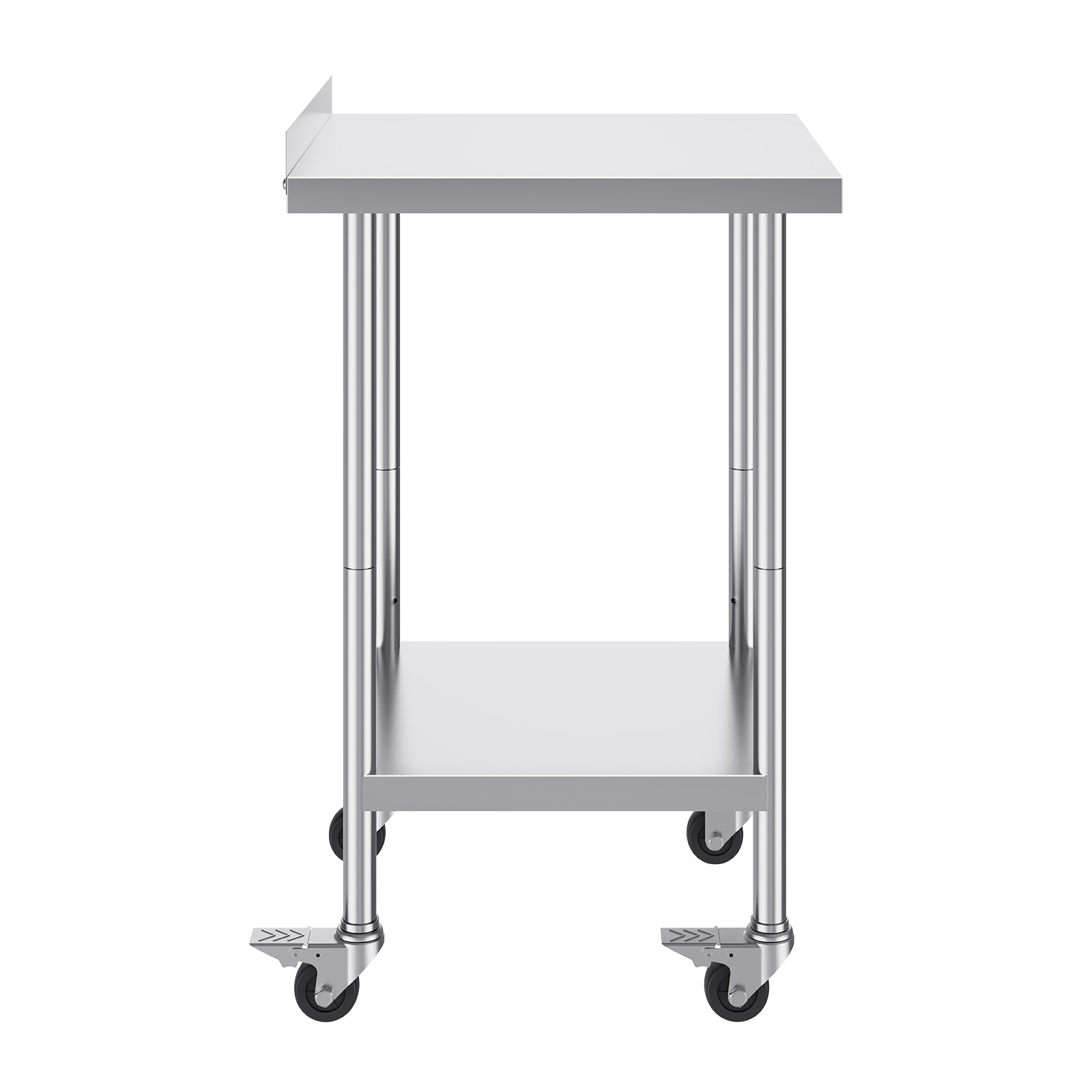 Stainless Steel Work Table, Commercial Food Prep Worktable with Casters - N/A