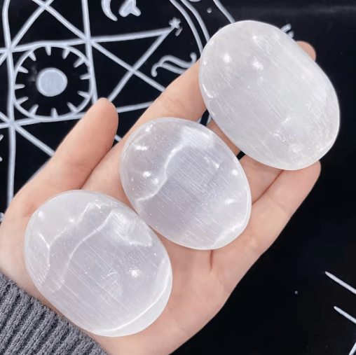 Natural Selenite Palm Stone Polished Oval Crystal For Meditation, Energy Cleansing & Home Decor random 1pc