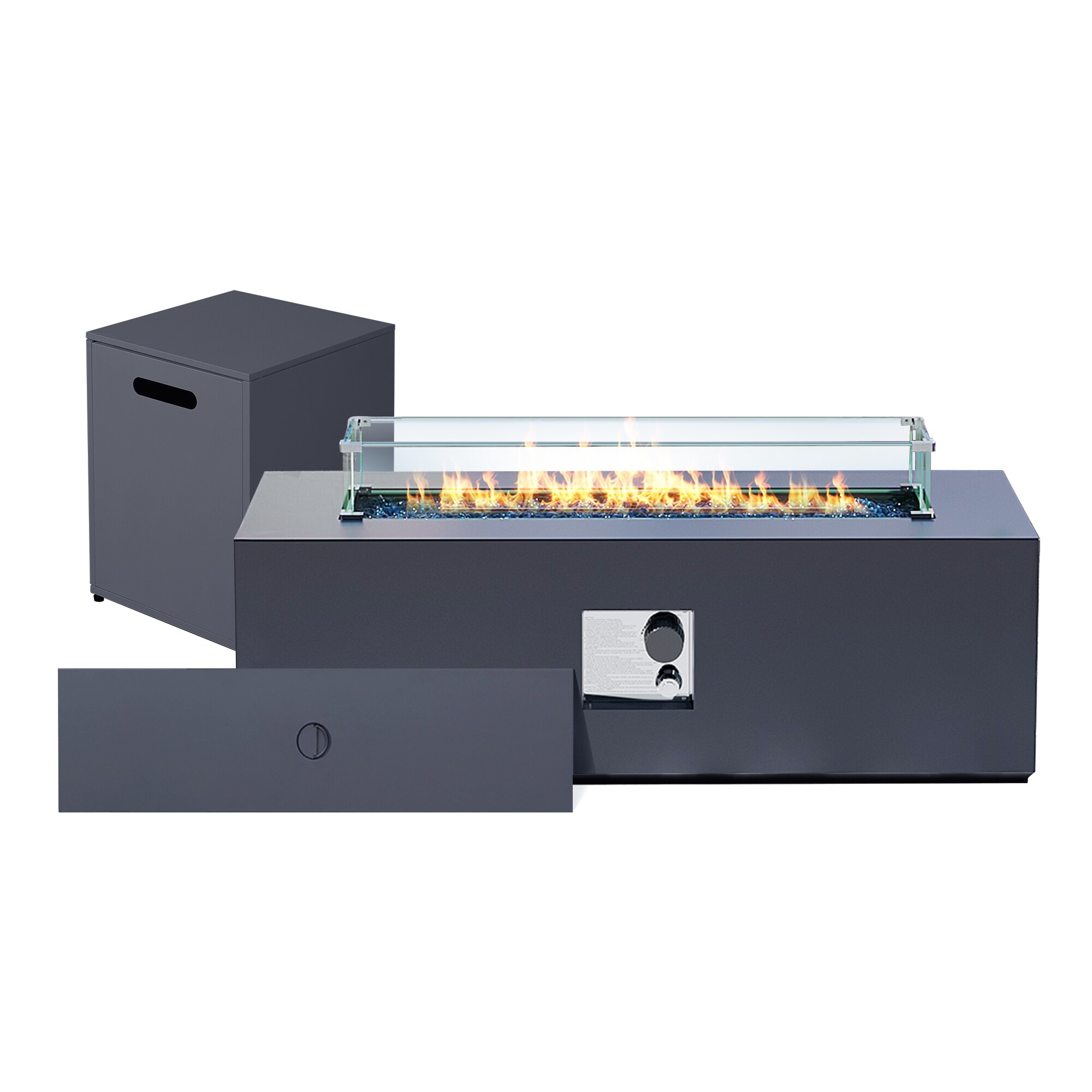 42-Inch Rectangular Iron Propane Fire Pit Table with Tank Cover and Wind Guard - N/A