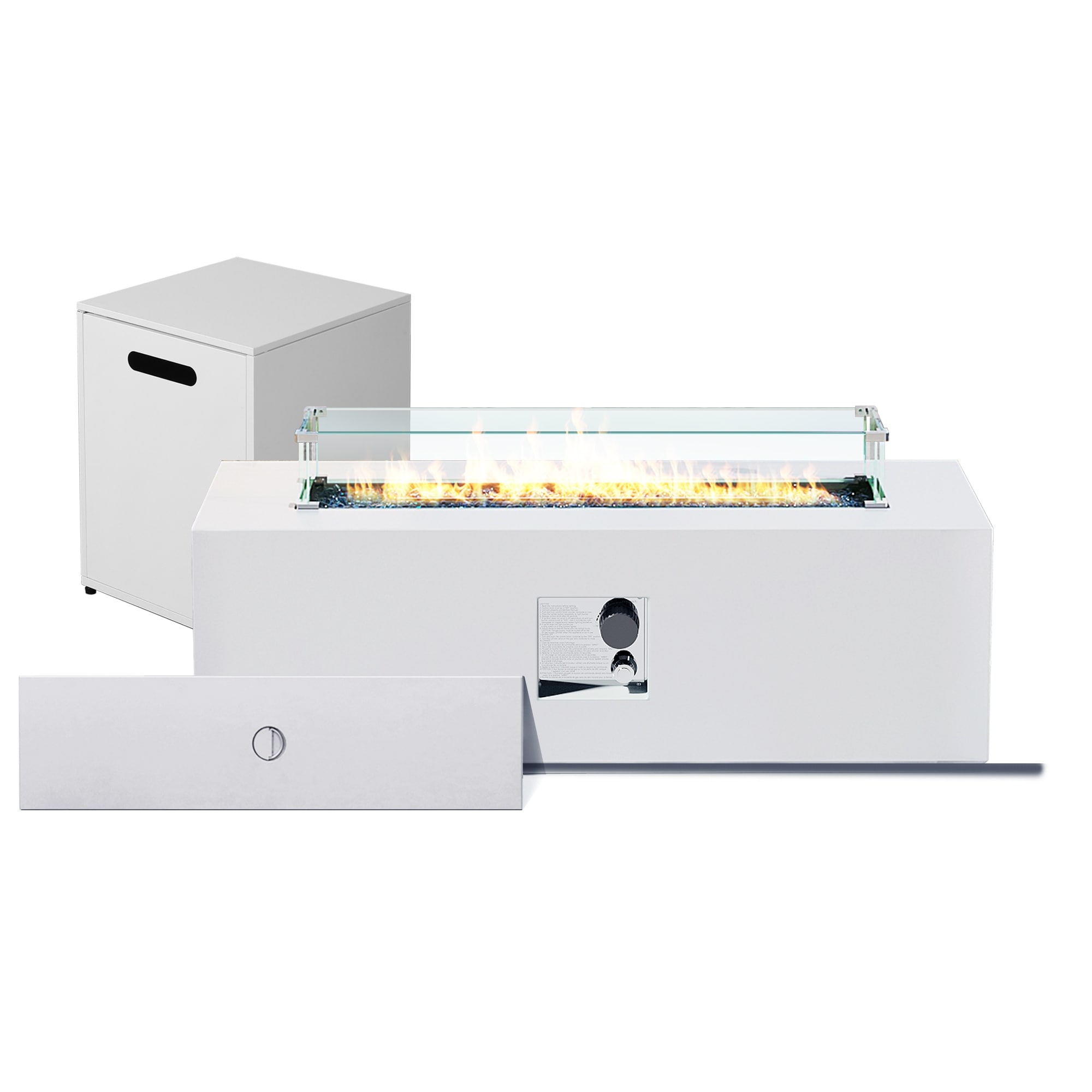 FestaLed 42" Rectangular Iron Outdoor Fire Pit Table with Gas Canister Cover, Lid, and Glass Draft Shield
