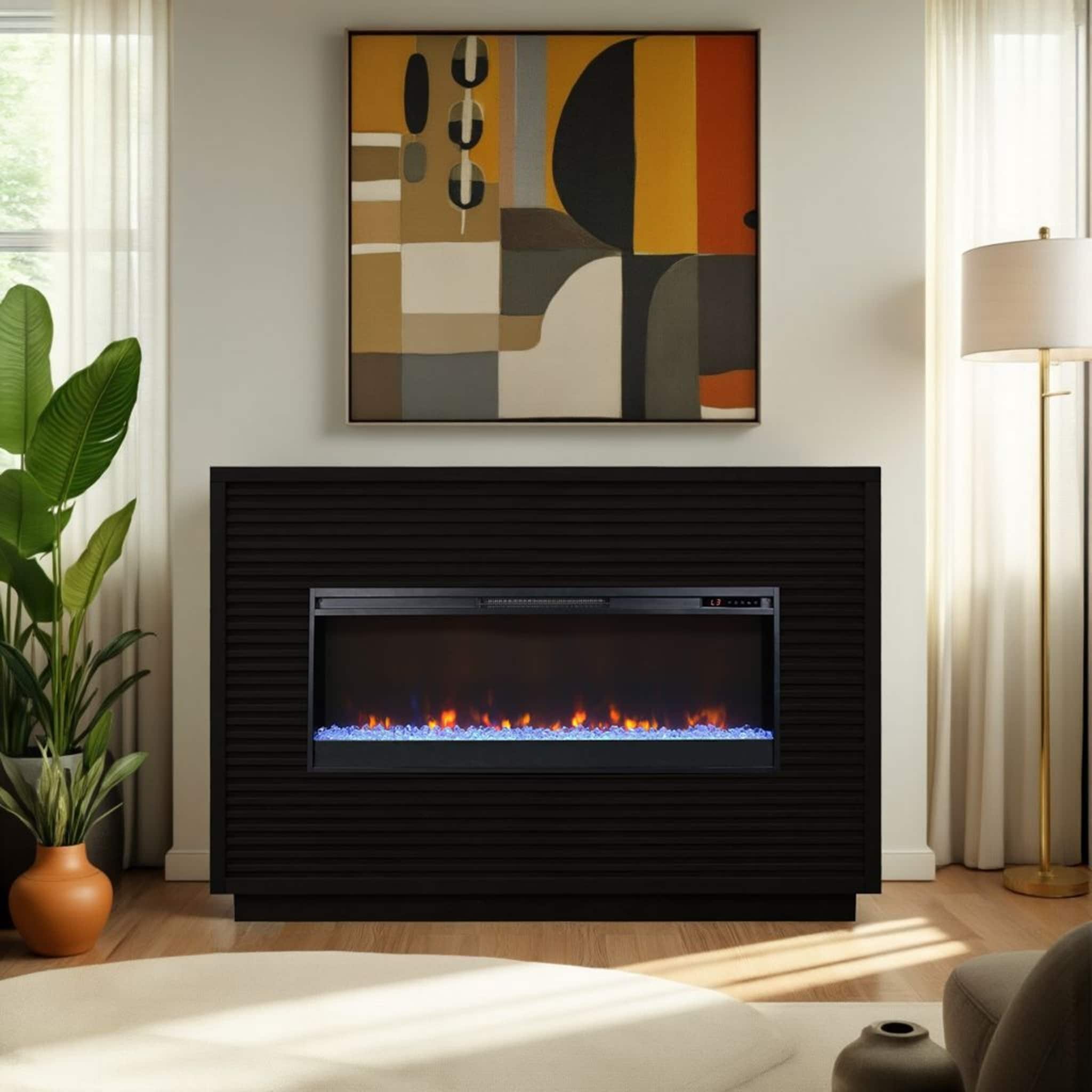 42" Modern Inserted Wall Mounted Electric Fireplace Heaters with Logs and Remote, 13 Adjustable Flame Color