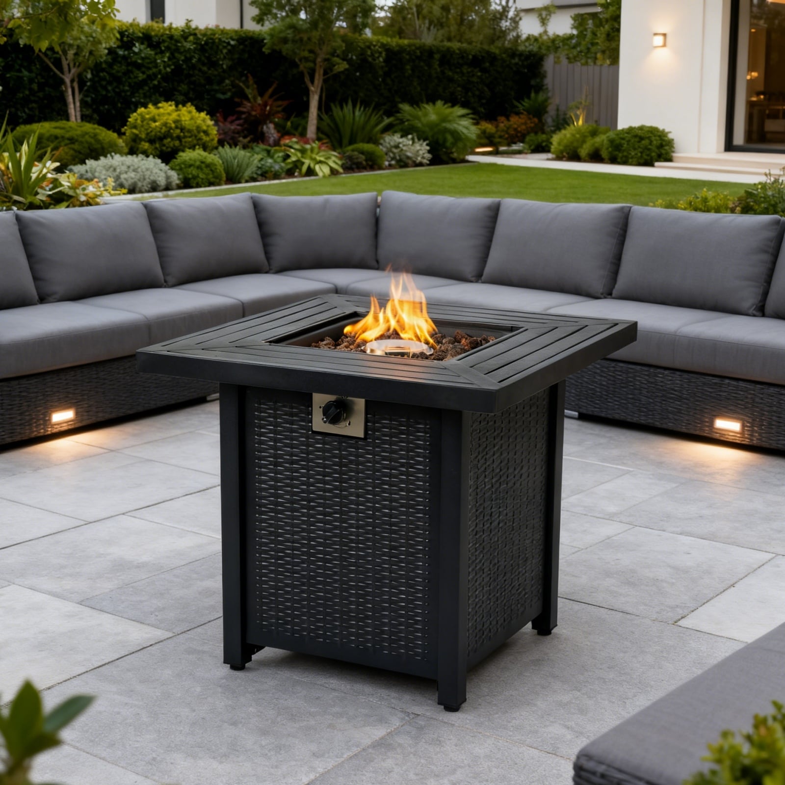28'' Outdoor Black Iron Square Propane Fire Pit Table with Lid