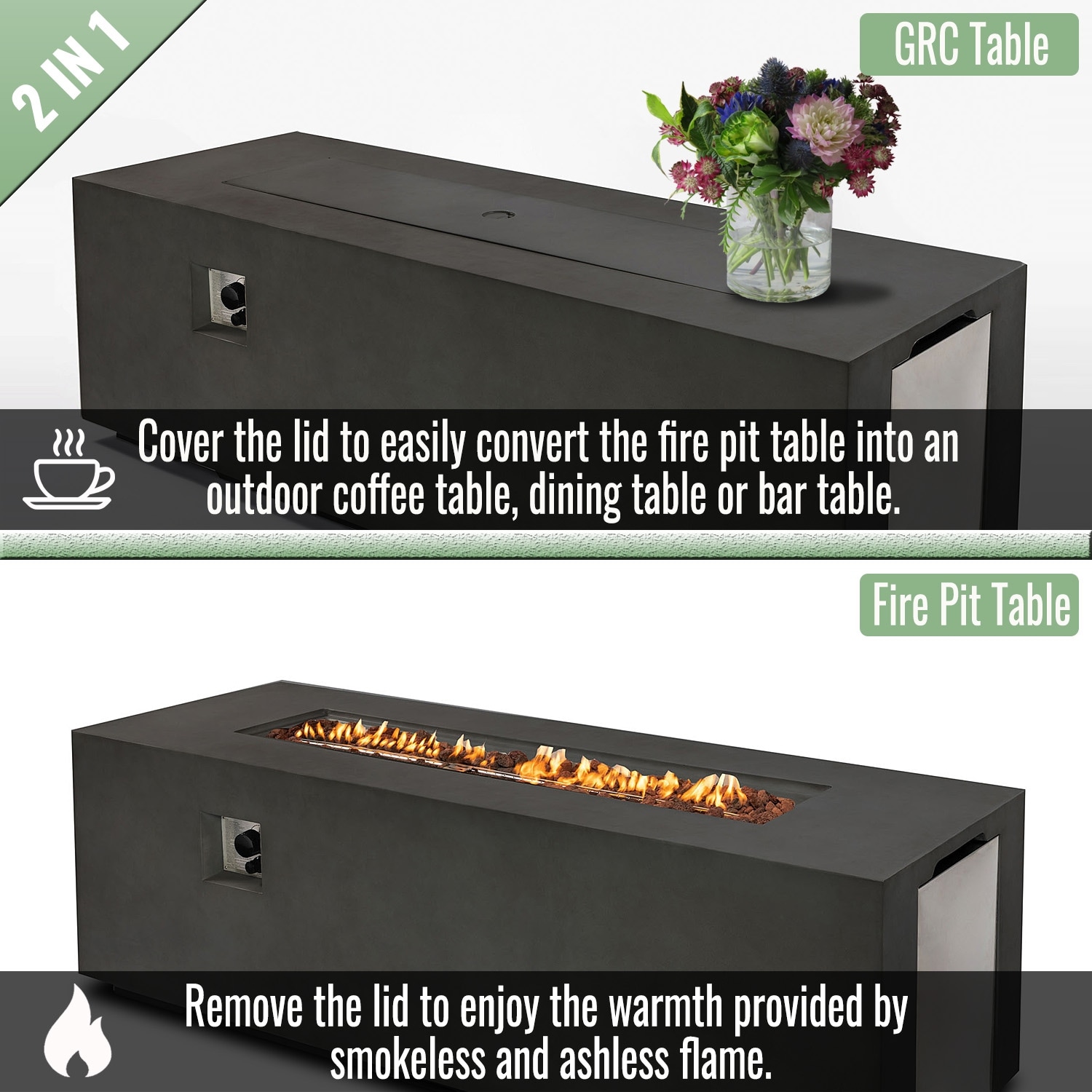 Dark Grey 70Inch Concrete Large Fire Pit Table