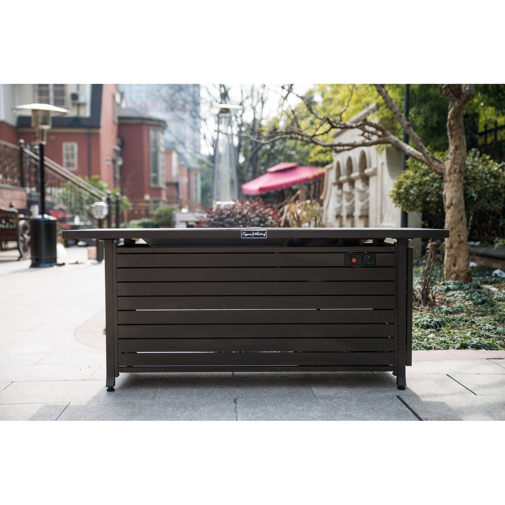 57In Outdoor Gas Propane Fire Pits Table, Aluminum, 50000Btu Firepit Fireplace Dinning Table With Lid, Fire Glass, Retangular, E