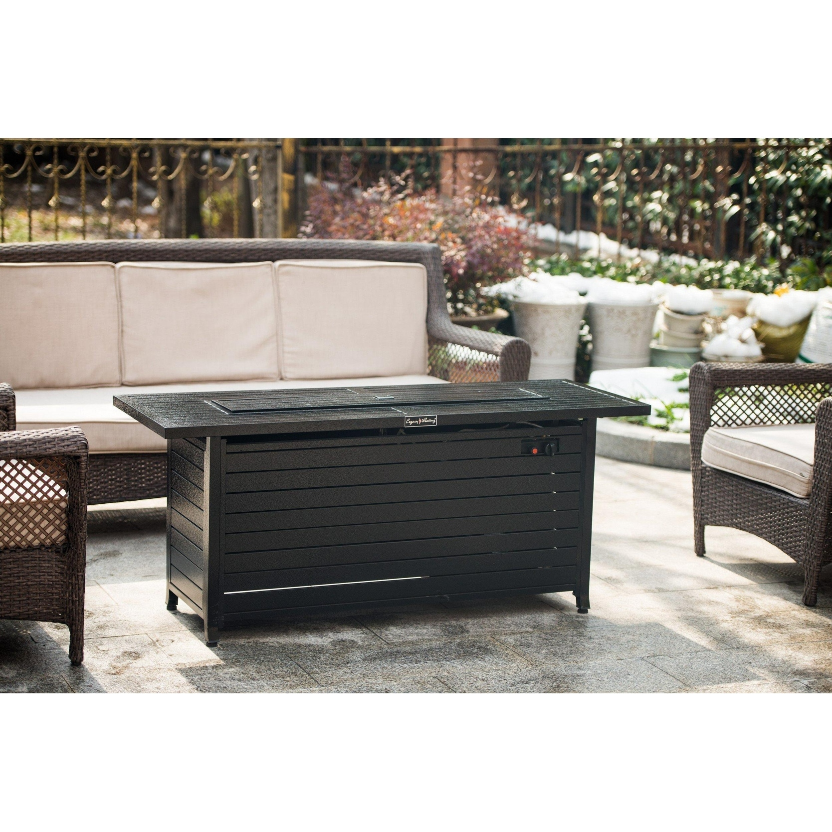 FestaLed 56" Rectangular Iron Outdoor Fire Pit Table with Gas Can Cover, Lid and Glass Draft Shield - N/A