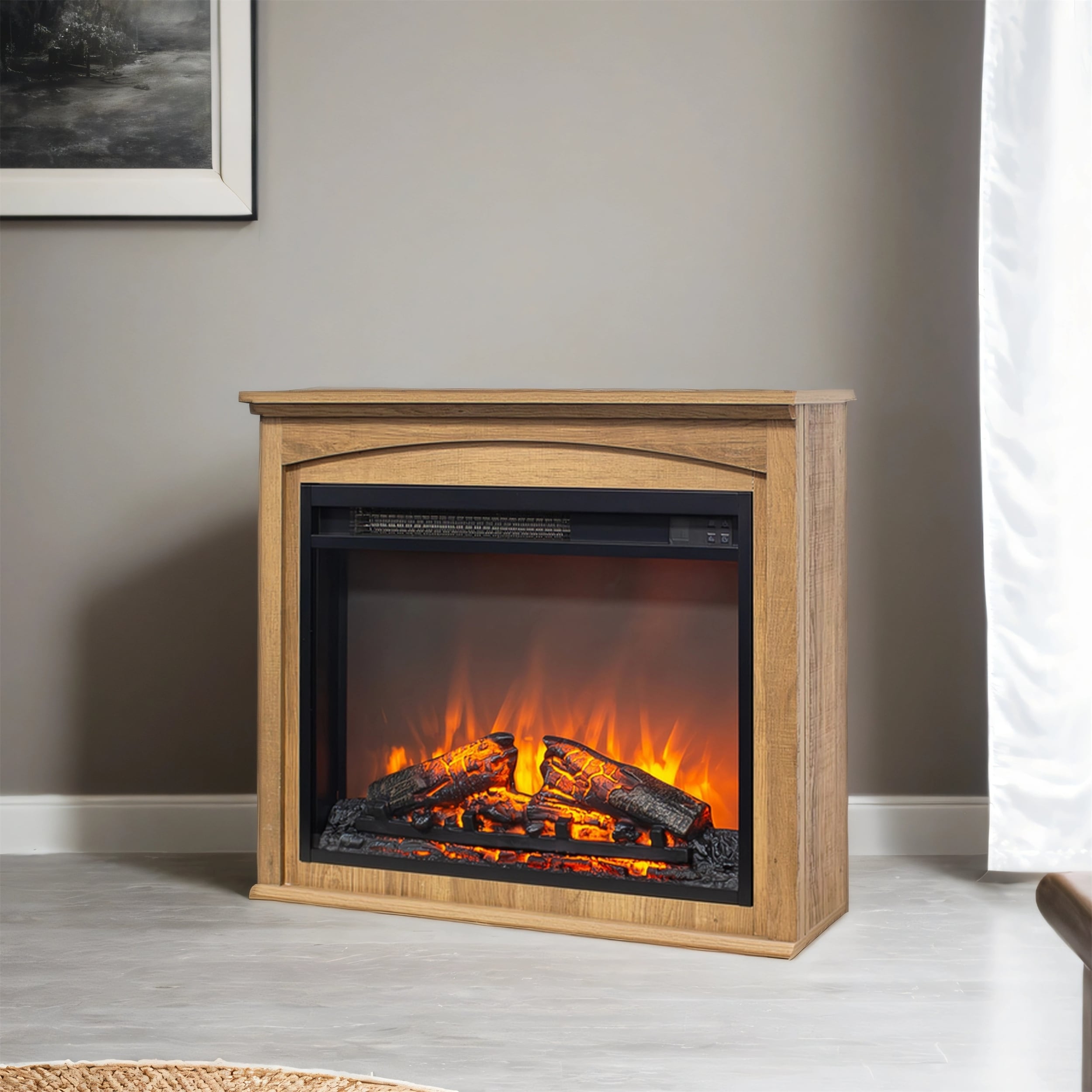 28" TV Stand with Electric Fireplace,Ready-to-Use Entertainment Center
