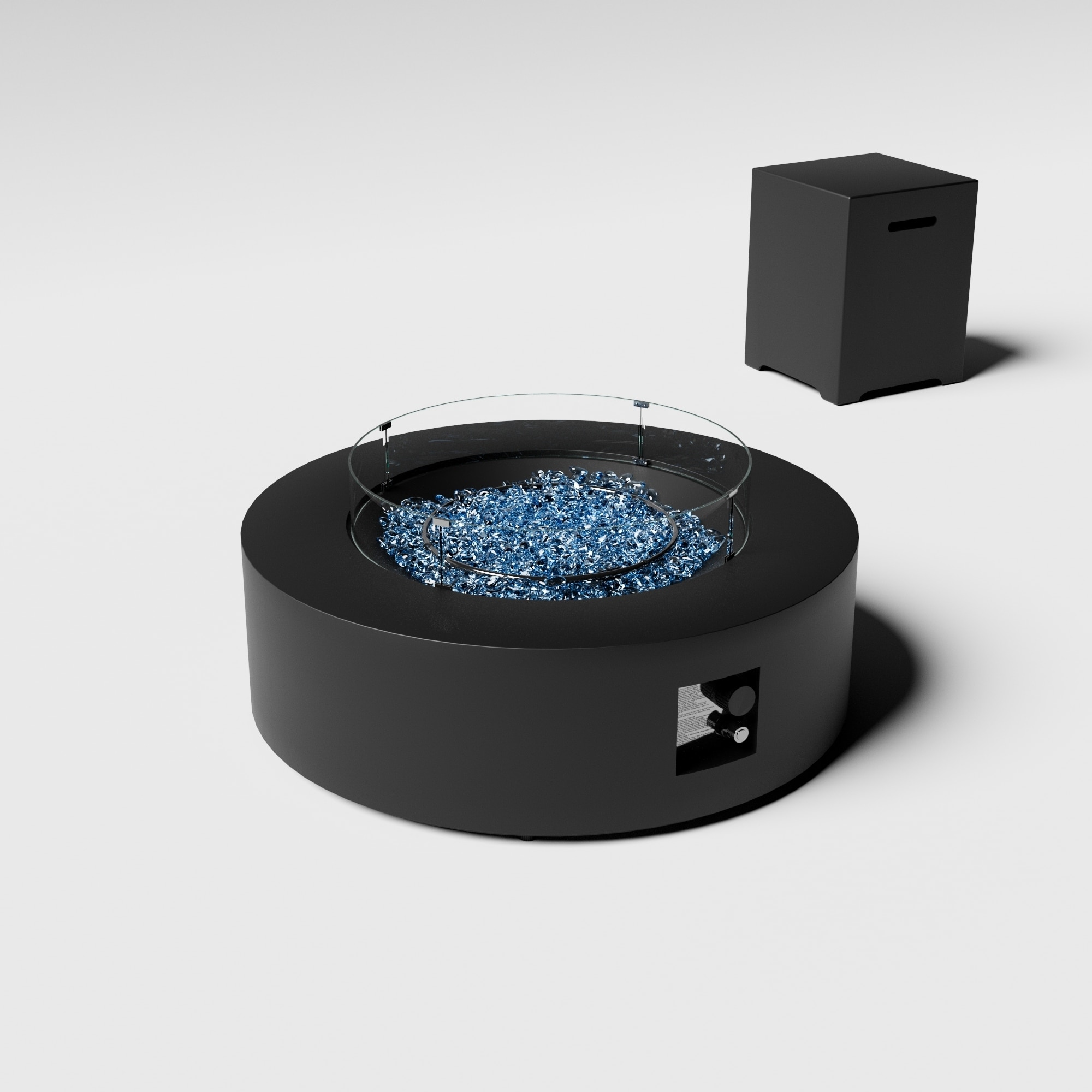 FestaLed 28-Inch Round Iron Propane Fire Pit Table with Tank Cover and Wind Guard