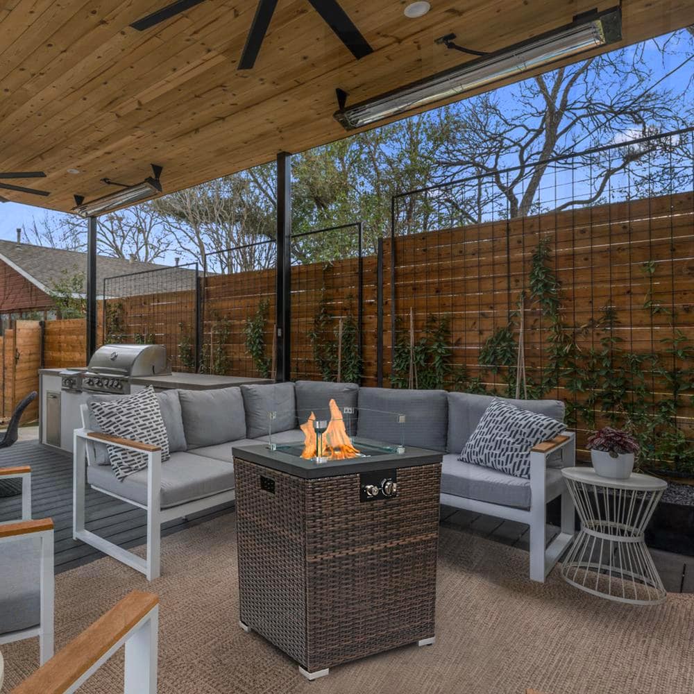 Propane Fire Pit Table 50000 BTU Outdoor Patio Heater with PE Rattan Coffee Table and Stainless Steel Burner