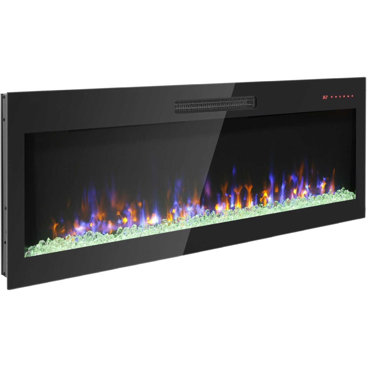 50 Inch Recessed Ultra Thin Tempered Glass Front Wall Mounted Electric Fireplace With Remote And Multi Color Flame & Emberbed, L
