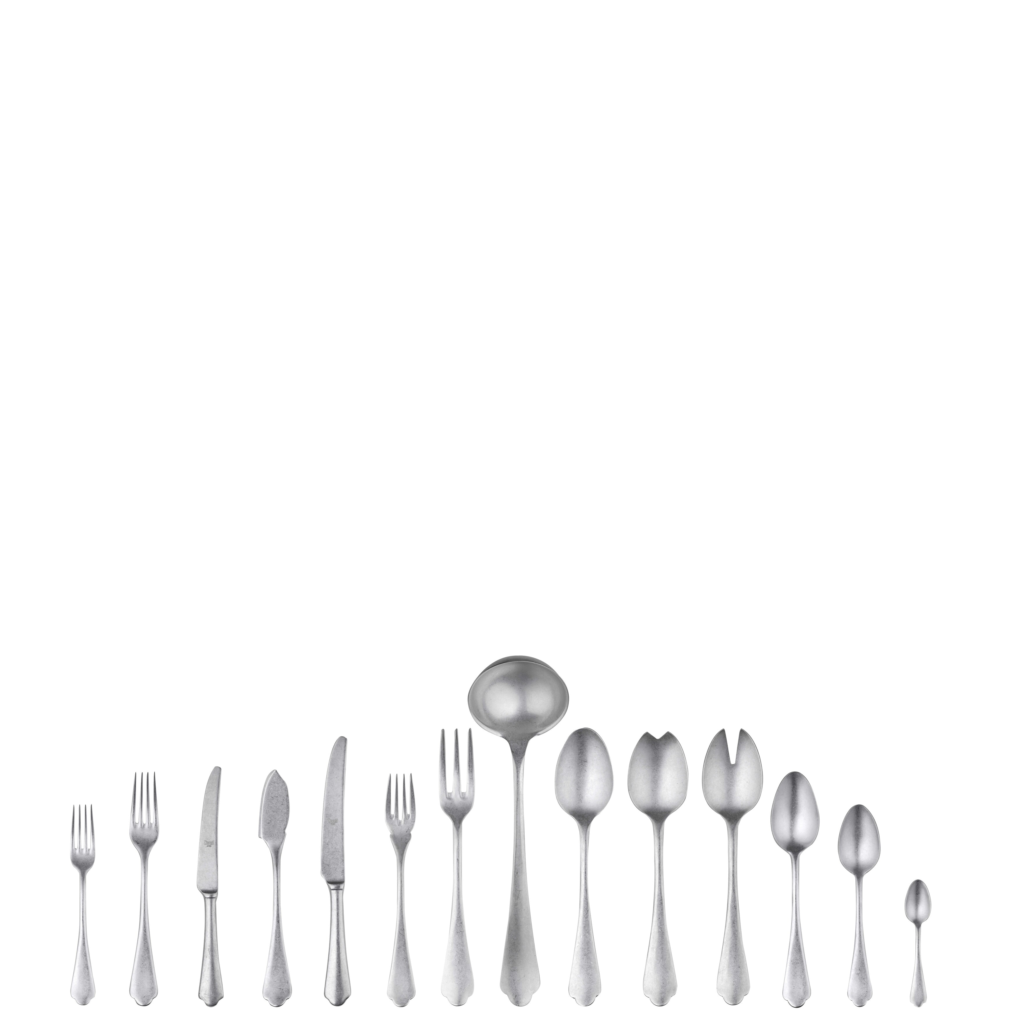 Mepra Epoque Flatware Set with H/H Knives - 45 Pieces - Pewter
