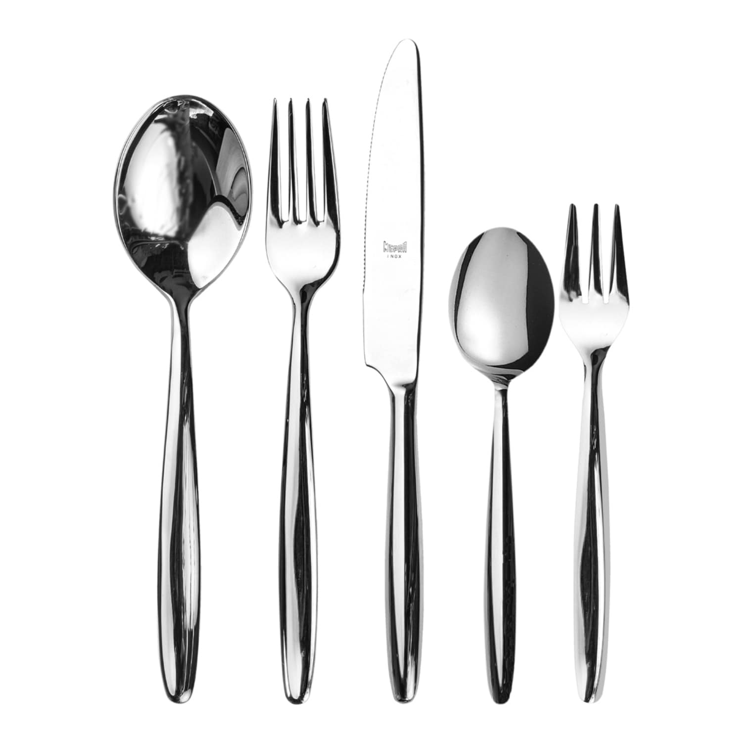 Mepra Acqua Flatware Set with Cake Fork and H/H Knives - 30 Pieces - Stainless Steel