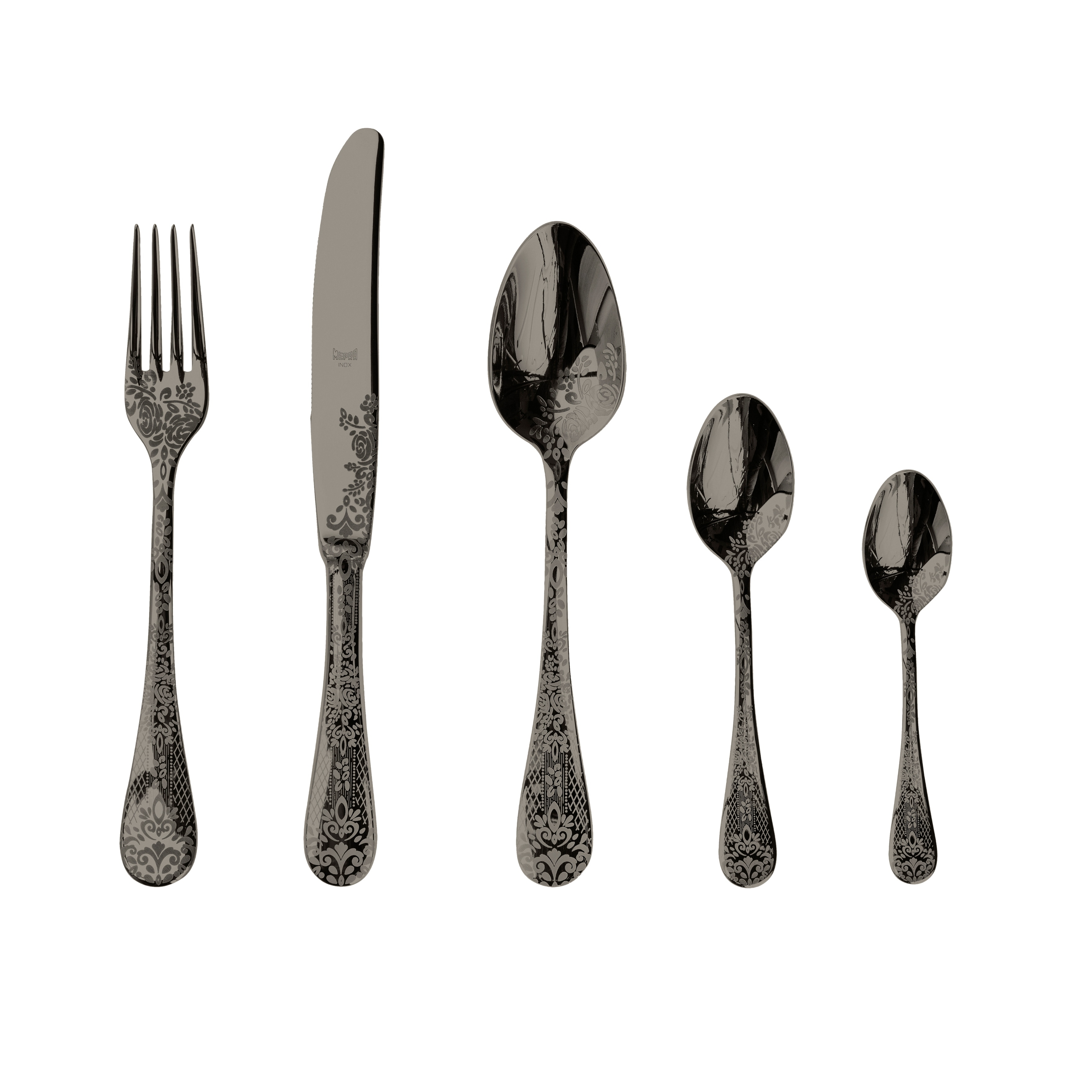 Mepra Boheme Flatware Set with H/H Knives - 113 Pieces - Stainless Steel