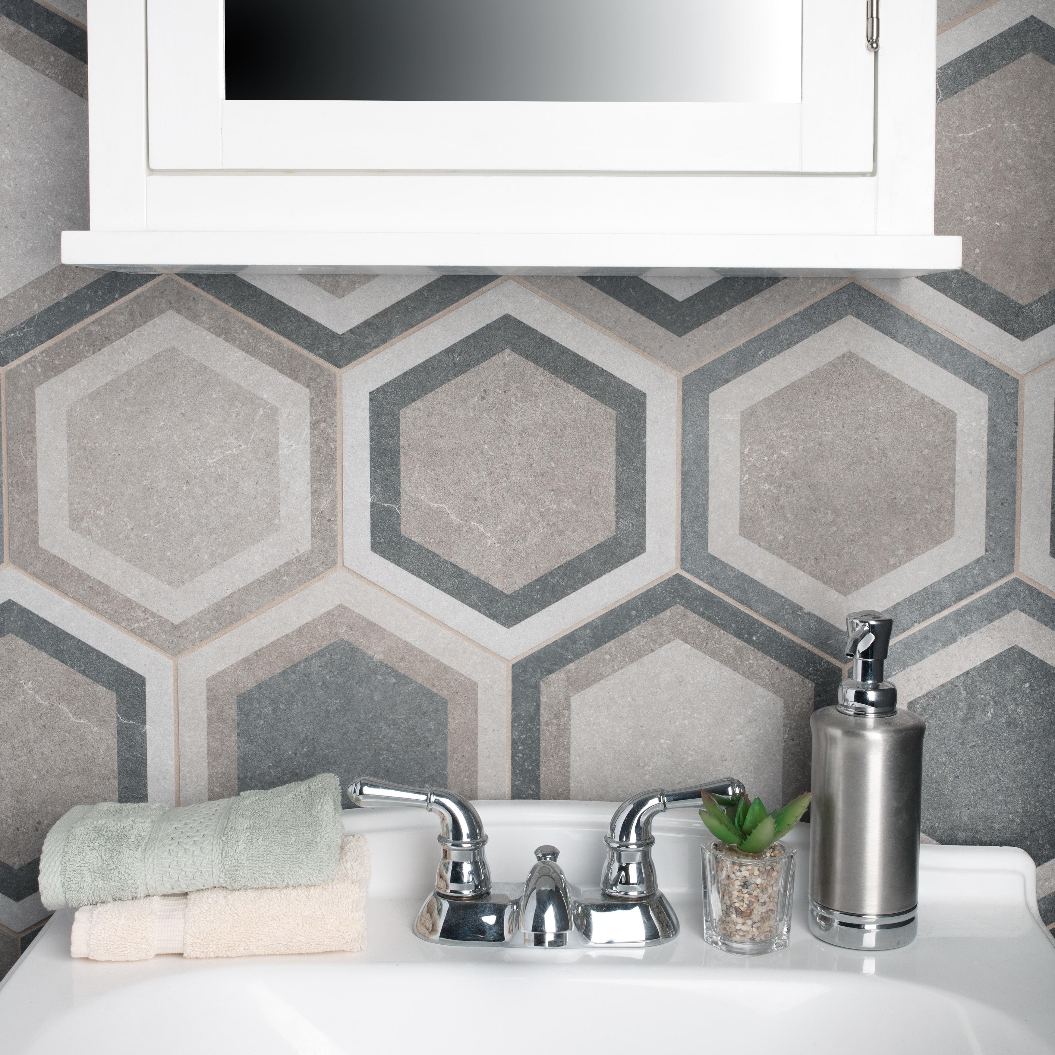 Merola Tile Traffic Hex Combi Grey 8-5/8" x 9-7/8" Porcelain Floor and Wall Tile