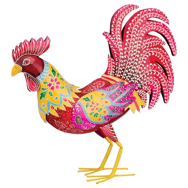 Regal Art & Gift 20804 - Henna Rooster Decor - Yellow/Red Home Decor Animal Figurines