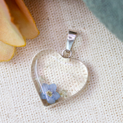 'Romantic-Inspired Heart-Shaped Natural Flower Resin Pendant'
