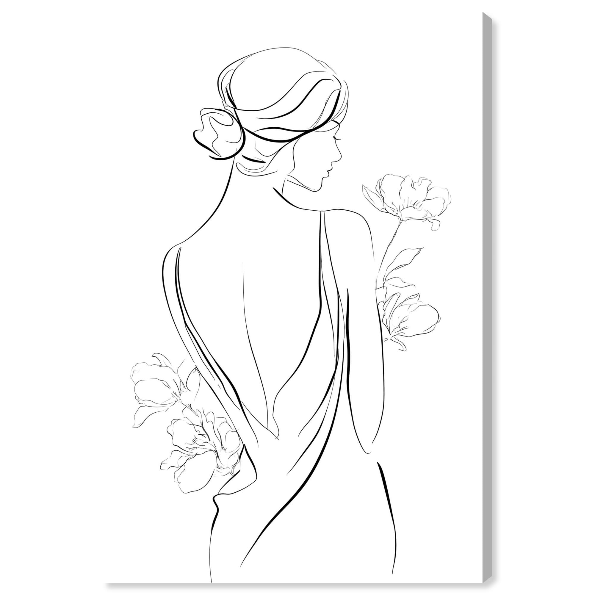 Blossom Floral Contour Minimalist Art Wrapped Canvas Print by Art Remedy