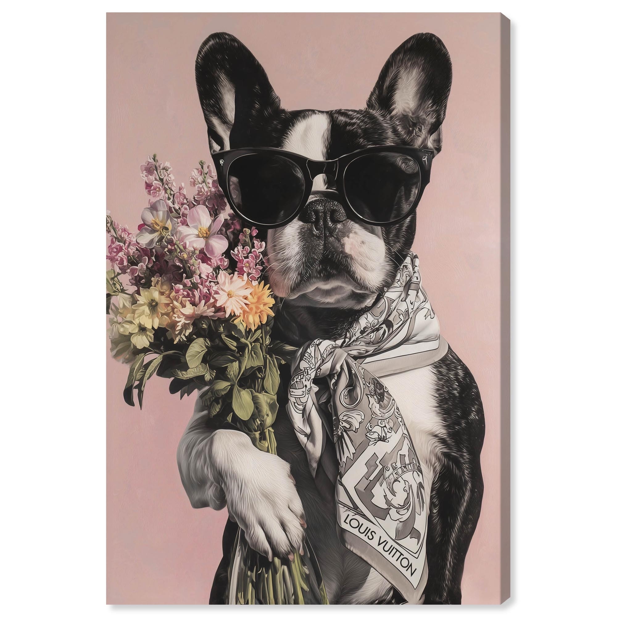 Frenchie with Bouquet Pets Glam Wall Art Wrapped Canvas Print by Art Remedy