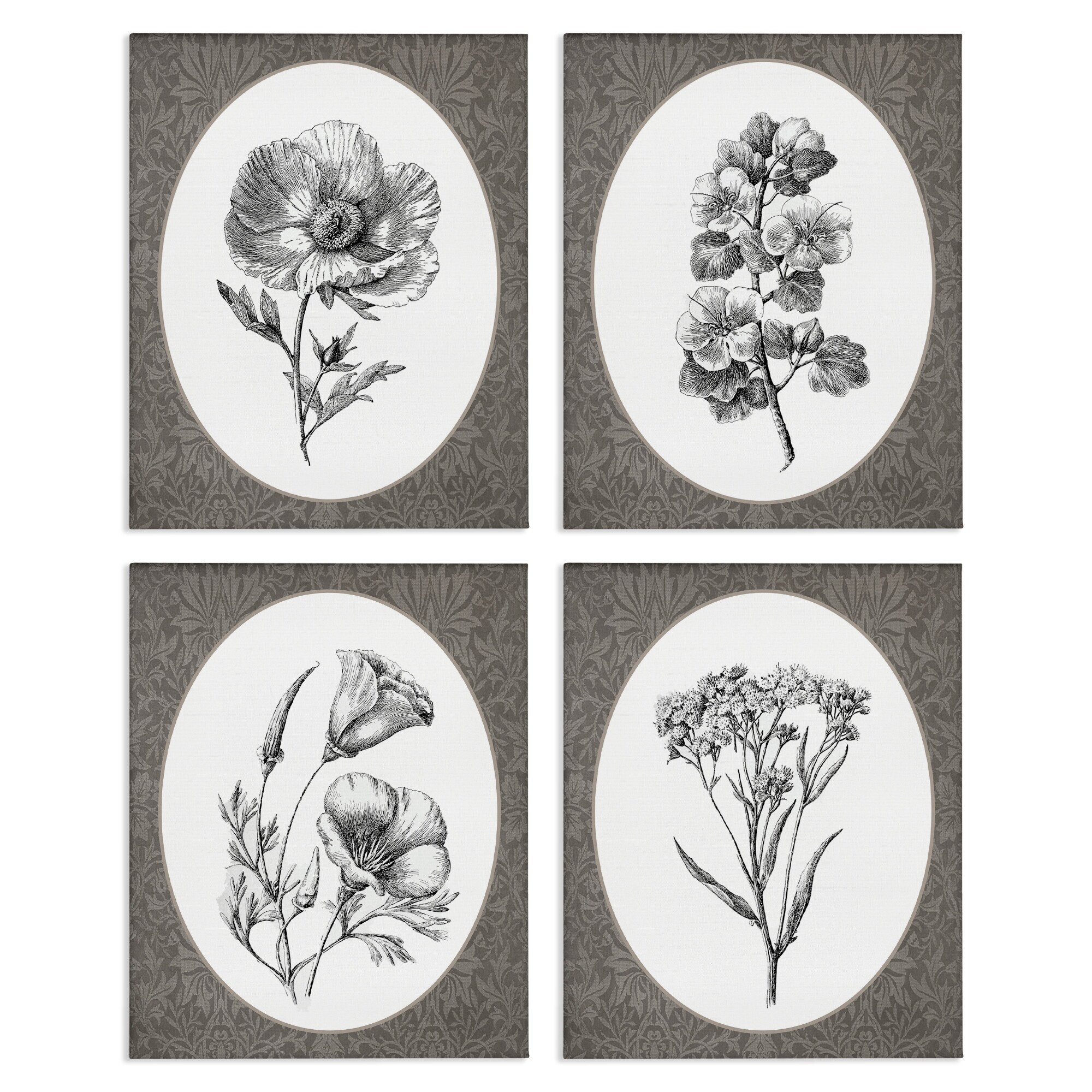 Stupell Ornate Blooms over Damask Canvas Wall Art Design By Lettered and Lined (Set of 4)