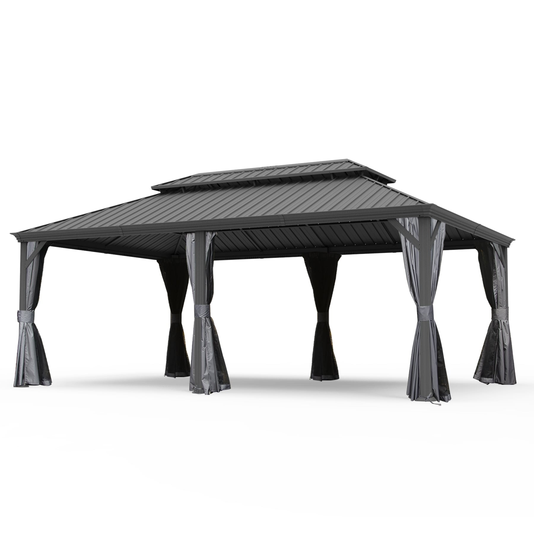 14 X 20 Hardtop Gazebo, Metal Gazebo With Drainage System, Dual-Layer Galvanized Steel Roof, Curtain And Netting, Shelter Canopy