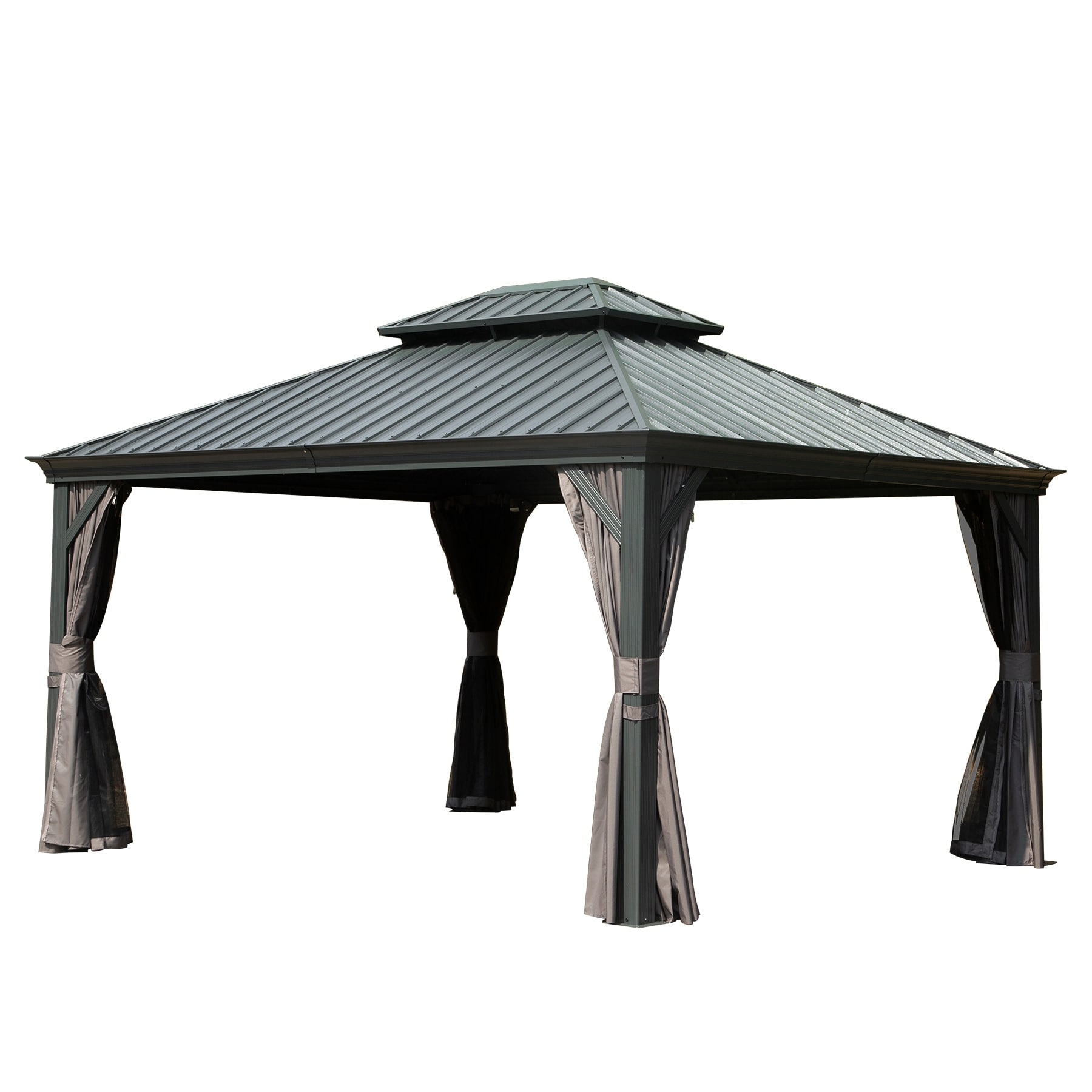 10 X 12 Hardtop Gazebo Outdoor Metal Gazebo With Galvanized Steel Double Roof Canopy, Aluminum Frame, Curtains And Netting