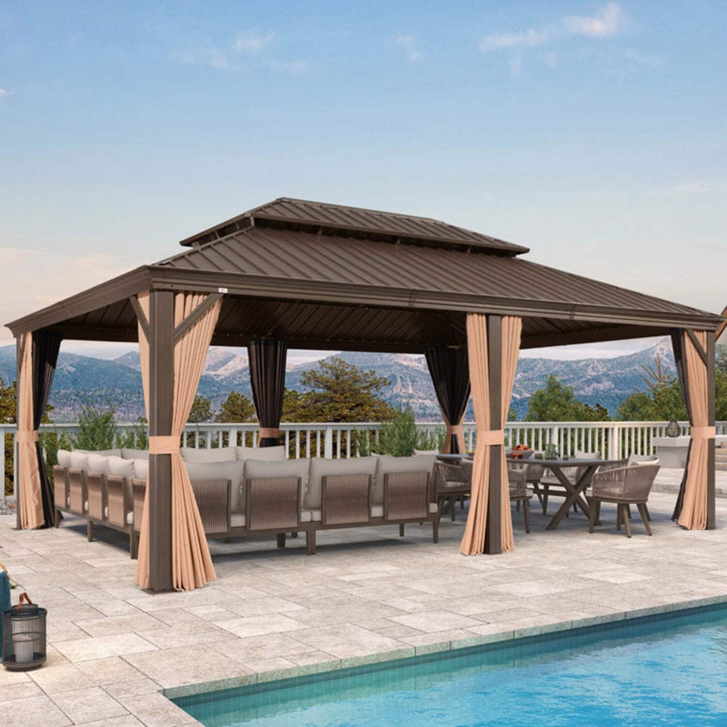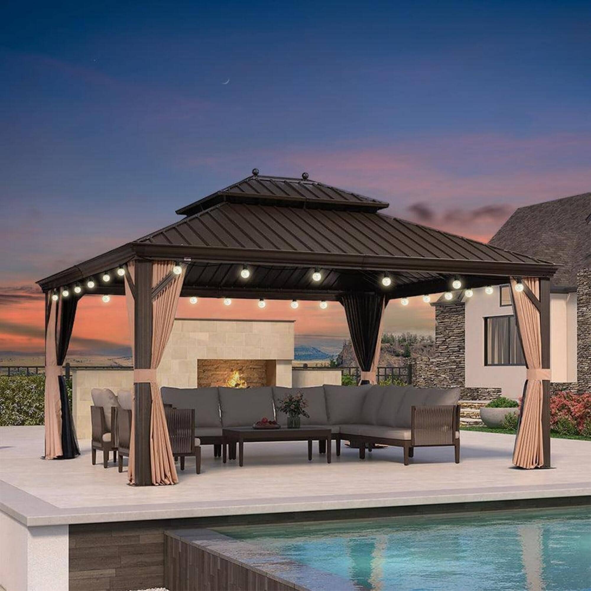 Outdoor Hardtop Gazebo with Galvanized Steel Double Roof & Aluminum Frame, Outdoor pergola with Premium Curtains and Nettings
