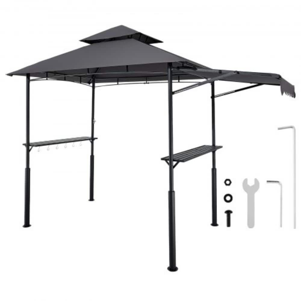 8x5 Feet BBQ Grill Gazebo with Double Tier Roof and Steel Frame Side Shelves and Hanging Hooks - 95.67” x 59.06” x 98.43”