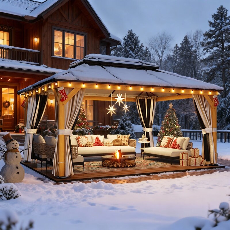 Erommy Hardtop Wood Gazebo with Double Roof – Free Dust Cover with 12x16 or 12x20 Model – Waterproof Outdoor Gazebo
