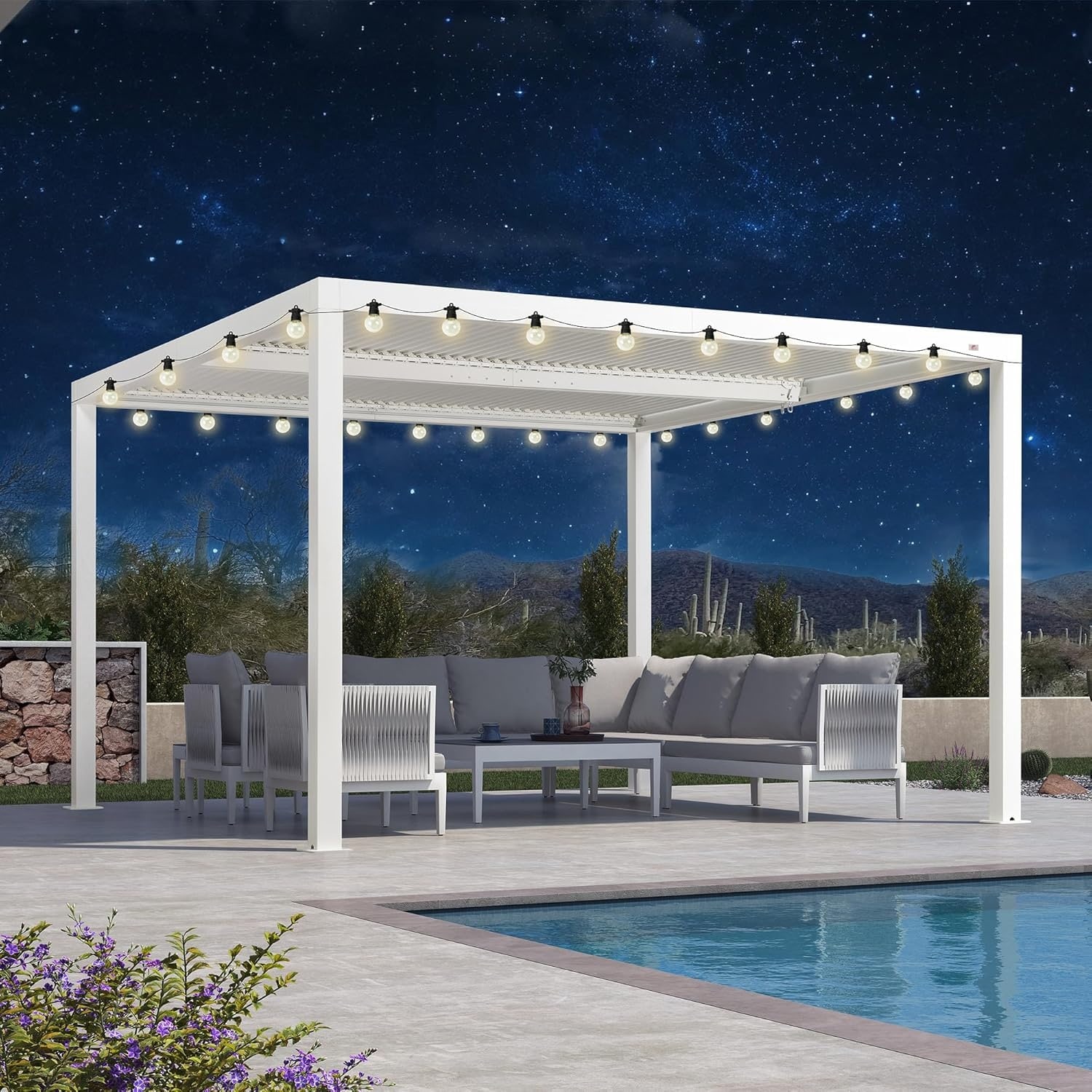 PURPLE LEAF Louvered Pergola with Solar Lights Hardtop Gazebo for Patio