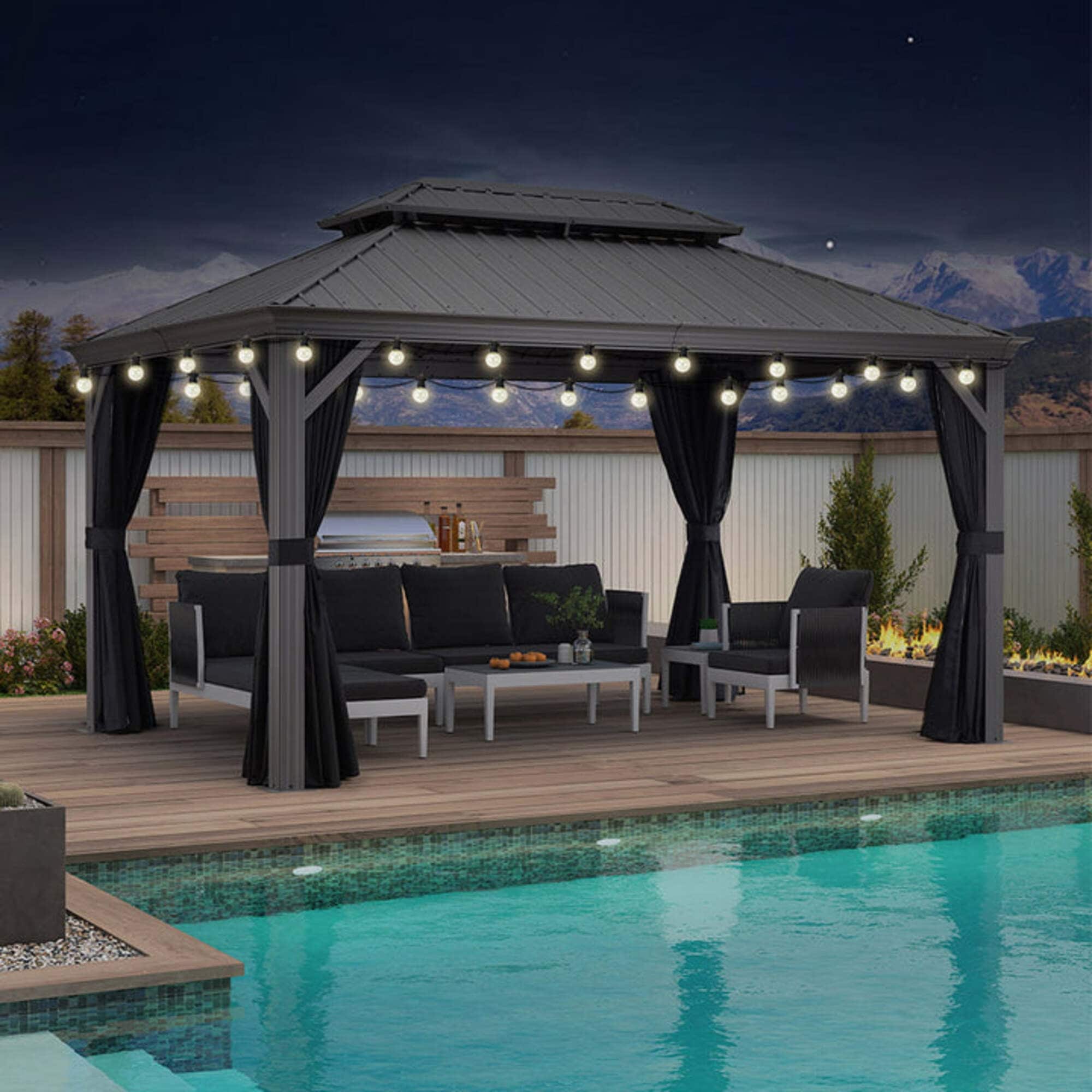 Domi Outdoor Living Hardtop Gazebo with Aluminum Frame and Galvanized Steel Double Roof