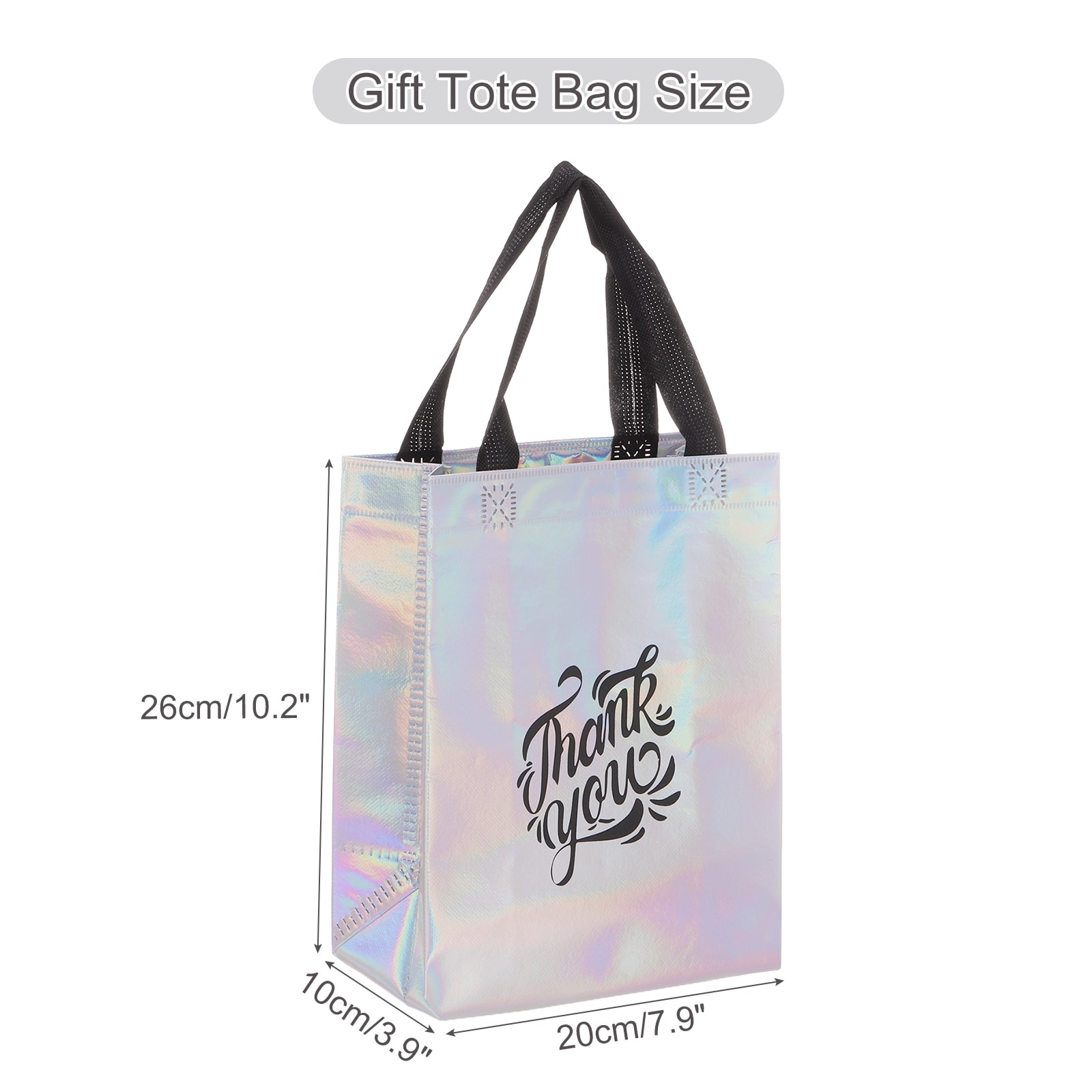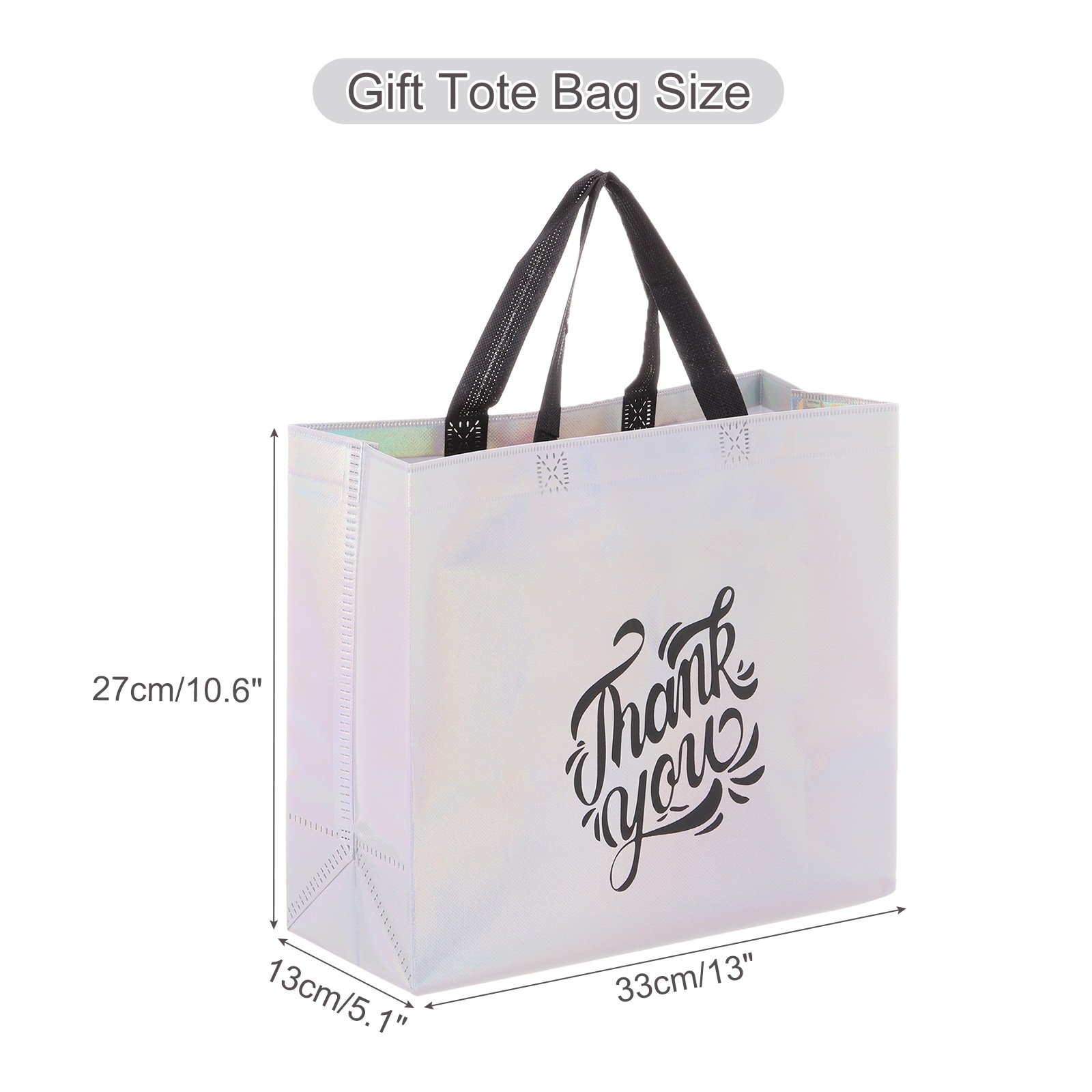 Reusable Gift Bags, Tote Glossy Grocery Shopping Bag with Handles for Birthday Parties, Wedding, Christmas - Multicolor