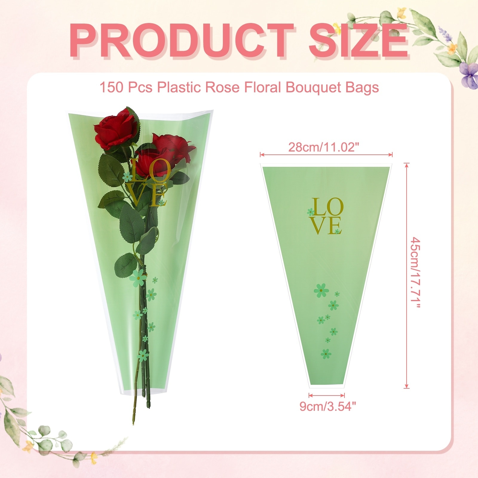 Rose Floral Bouquet Bags Single Flower Sleeves Wrapping Bag for Wedding, Birthday, Retail Packaging - 17.7"