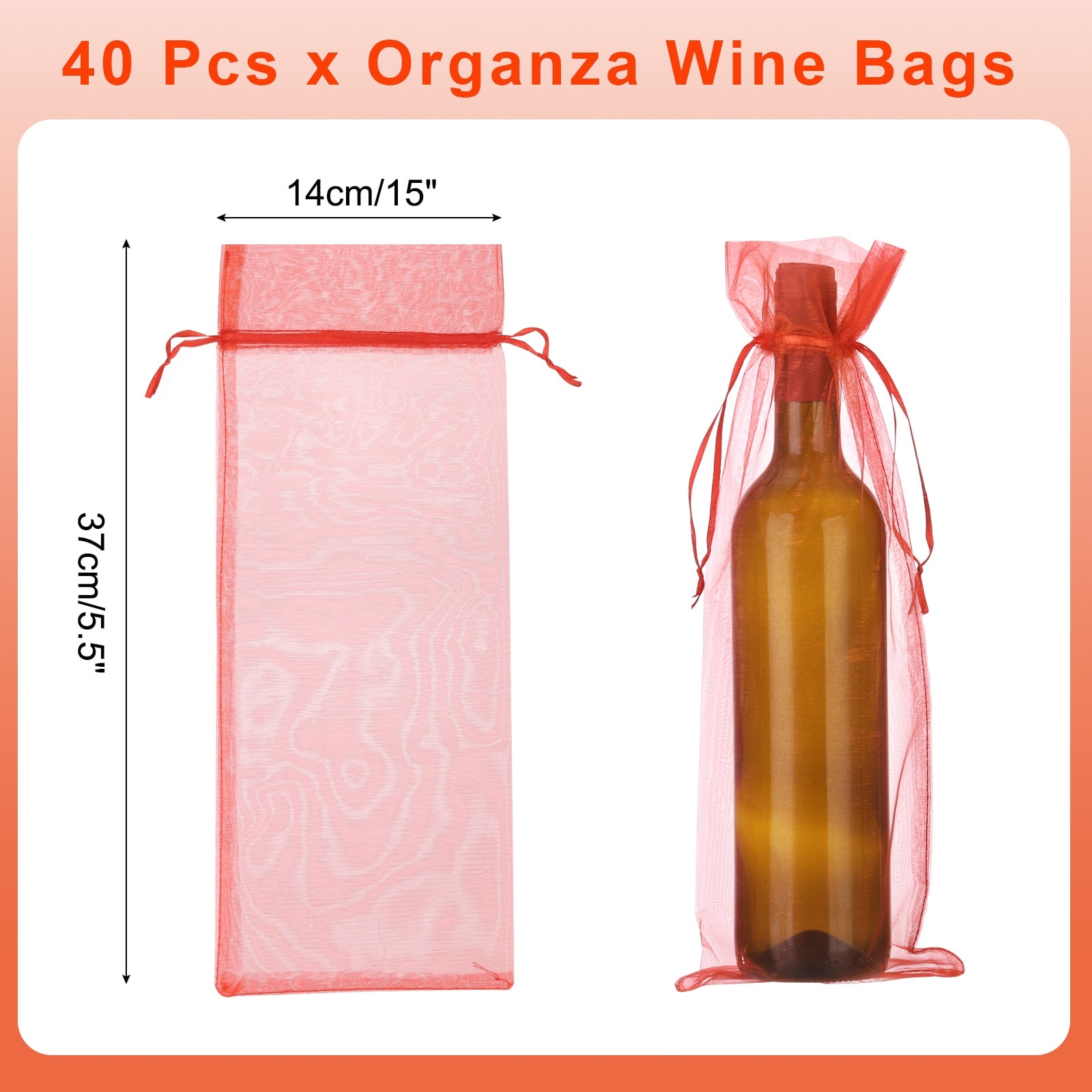 Organza Wine Bags, Gift Wrap Bags Sheer Mesh Wine Bottle Bag Drawstring Pouches Reusable for Party Favors