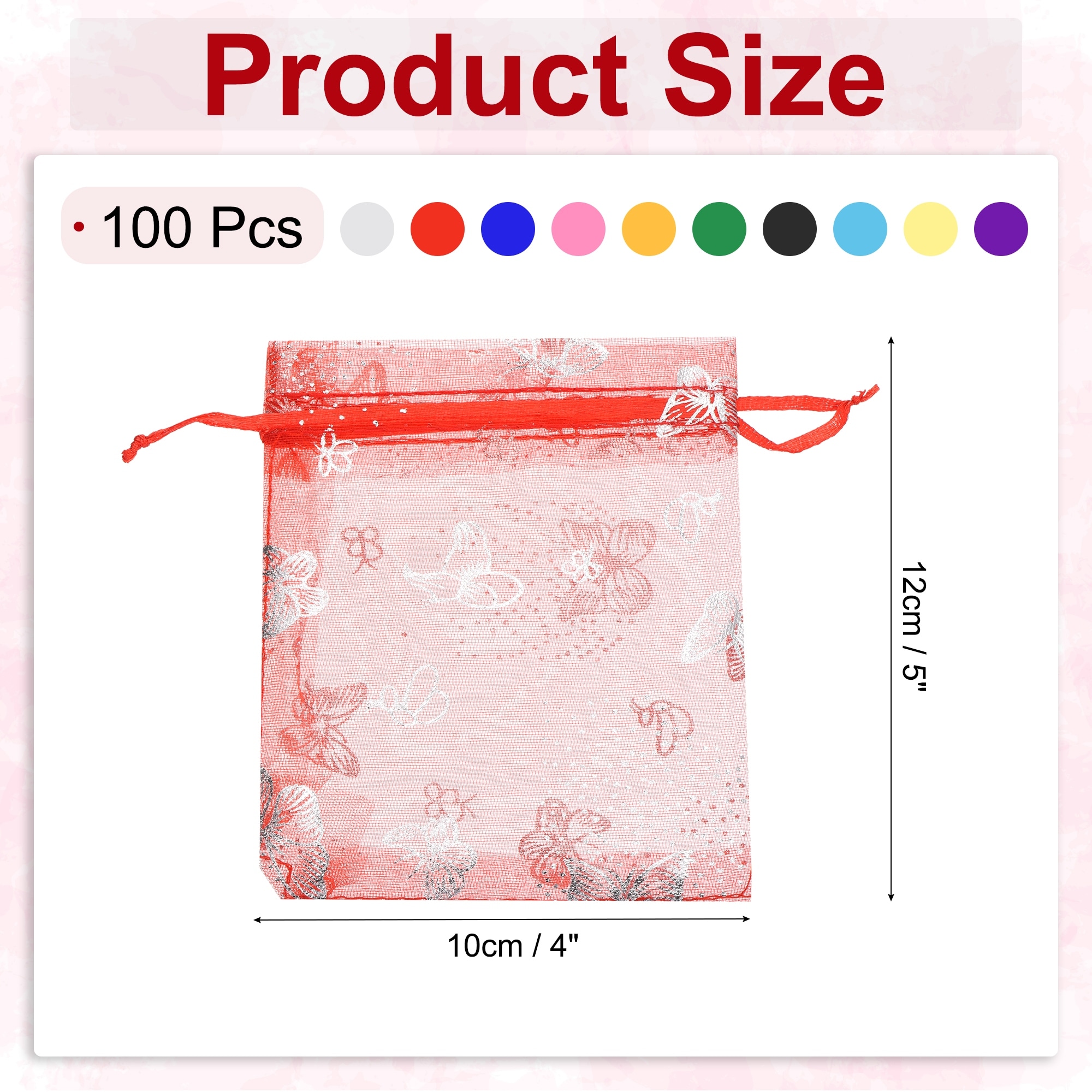 Organza Bag, Sheer Butterfly Mesh Bags Drawstring Gift Bags Bulk Party Favor Bag Jewelry Pouches - 4"x5"