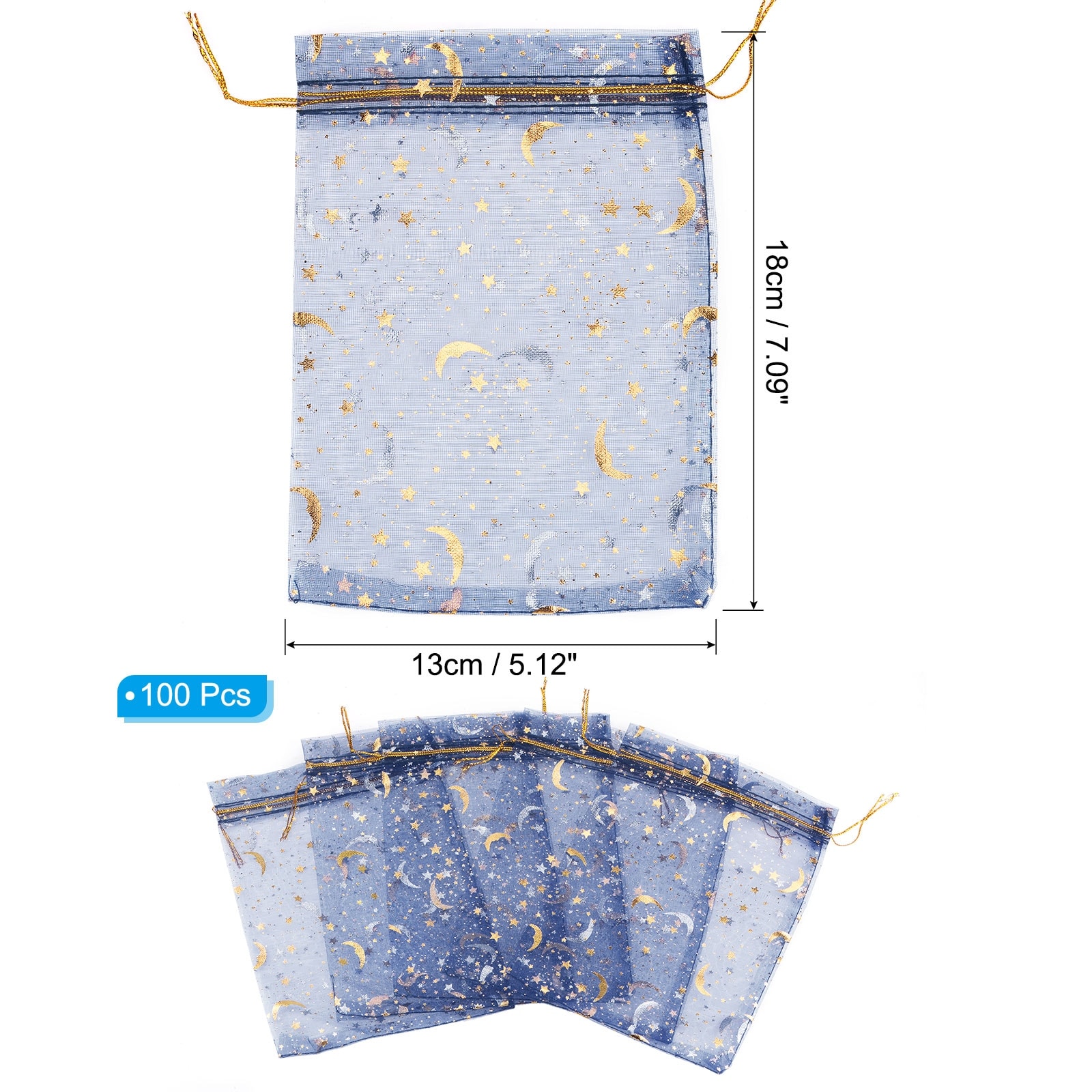 Moon Star Printed Organza Bags, Mini Pouches,