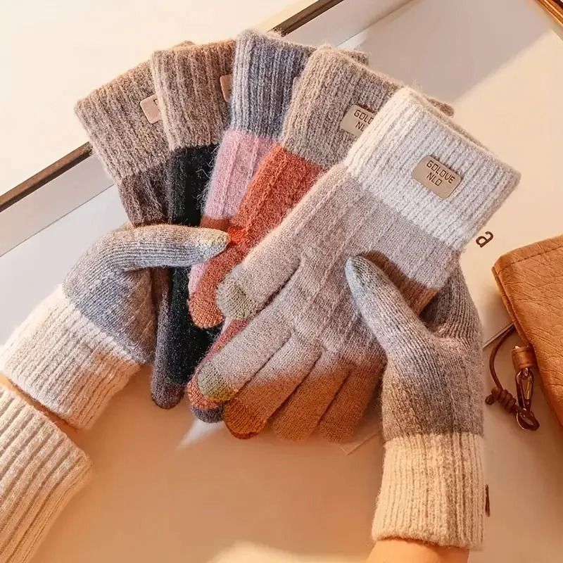 Winter Warm Gloves With Elastic Cuffs For Outdoor Leisure 1 Pair Grey