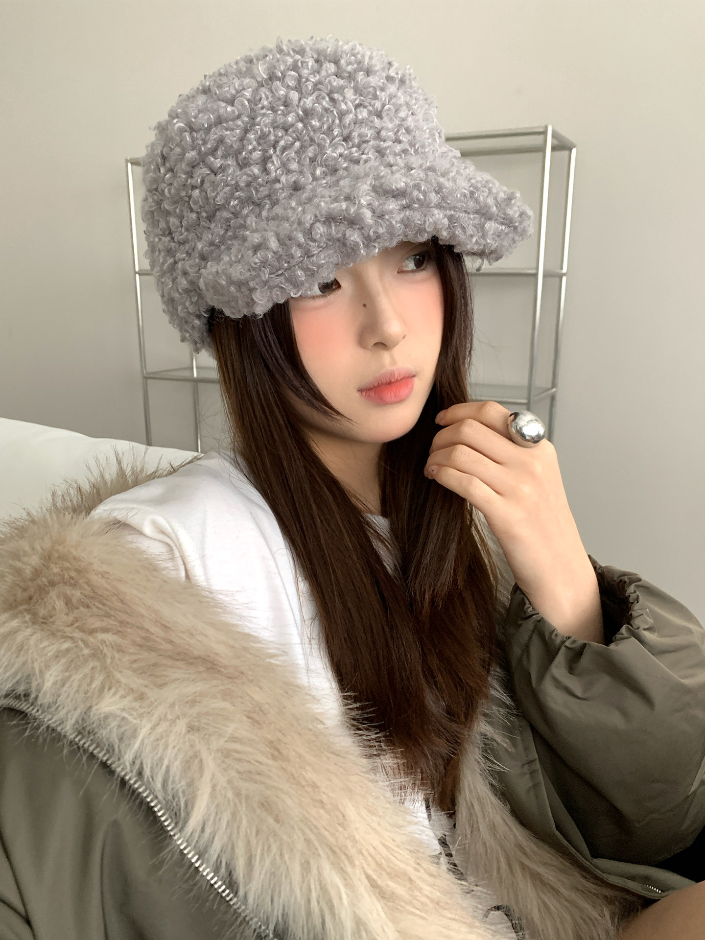 Versatile Women's Korean Baseball Cap, Warm Retro Style, Plush Pure Color For Autumn And Winter beige