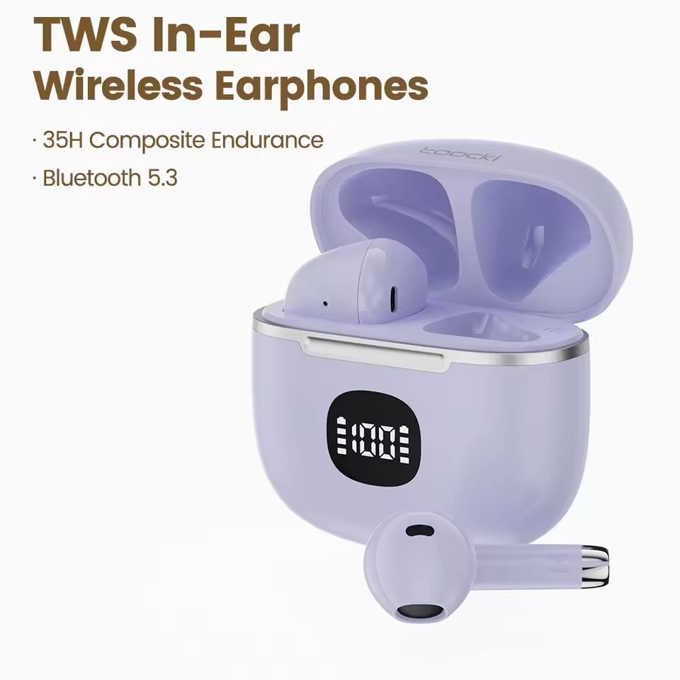 Bluetooth Wireless Earbuds With LED Display And Long Battery Life purple
