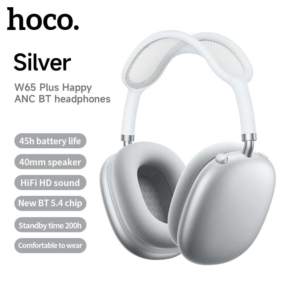 W65 Plus Over Ear Wireless Bluetooth Headphones, ANC Noise Canceling Sport Headsets, Hifi Sound Big Earphone silver